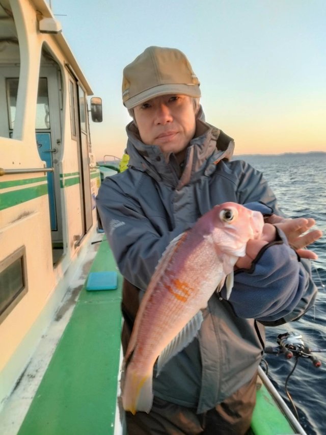 (アカアマダイ)20~41cm 1~4匹 イトヨリ 28~45cm 0~3匹 本日もご乗船頂きありがとうございました^o^3号船アマダイで出船しました。朝から海悪くアタリをとるのが難しそうでしたねー!外道にアカボラ、レンコダイ、オニカサゴ良くアタリましたが全部小さいのでした(;;)明日めアマダイで出船しますので頑張ります(°▽°)