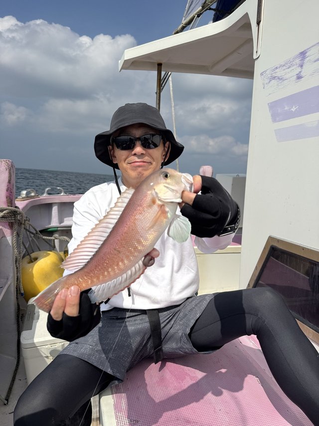 (アカアマダイ)32~40cm 0~3匹 0の方1名。他にイトヨリ、アジ、サバ、ソーダ、キダイ、ヒメコダイ、アラ等。朝のうちだけ緩い流れありましたが日中流れまったくなし!で終わってしまいましたね。明日もご乗船お待ちしてます。