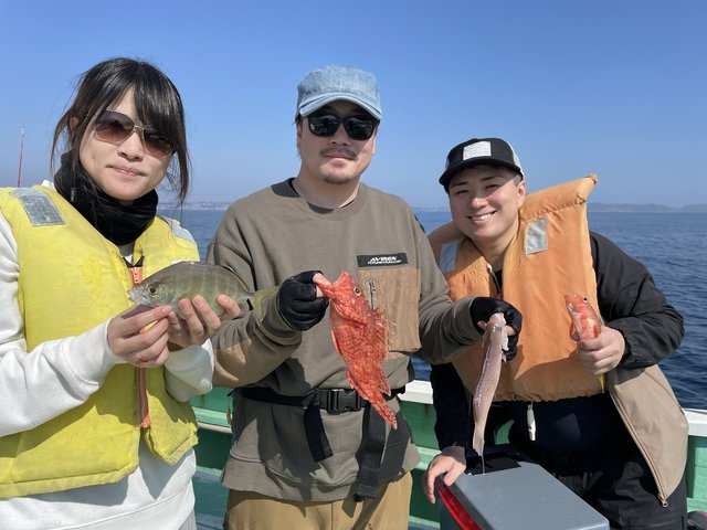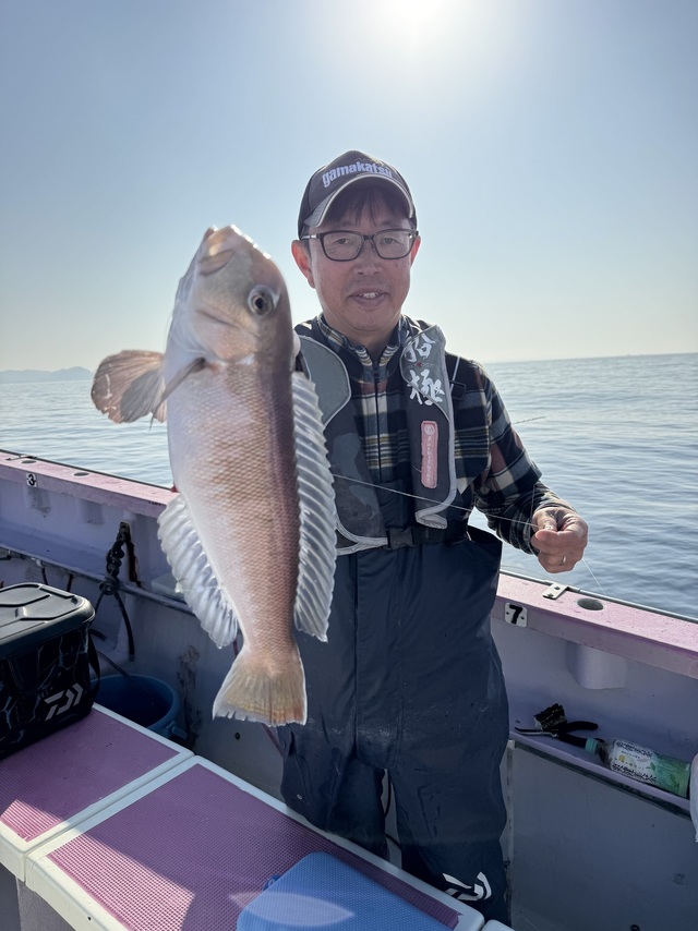 (アカアマダイ)24~39cm 0~6匹 オニカサゴ 1~1匹 イトヨリ 0~2匹 ムシガレイ オニカサゴ カサゴ レンコダイ ヒメコタイ カナガシラ ガンゾウ 暖かいそして海上ベタ凪最高の陽気でした! 潮の流れがあればもっと最高でしたが、 どのポイント落としてもアマダイ顔だしますが。 苦戦の1日にトップは6枚でしたが残念ならがら型みれない方も、 釣果:アマダイ24~39cm0~6枚・オニカサゴ0~1匹・イトヨリ0~2枚。 活性ないせいかバラシやアタリだけで針に乗らないパターン他イトヨリ・ムシガレイ・オニカサゴ・カサゴ・レンコダイ・ヒメコダイ・カナガシラ・ガンゾウでした。