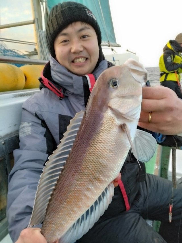 (アカアマダイ)20~53cm 6~6匹 マダイ キアマダイ LTアマダイ船。 今日は北風強く釣り辛かったです。一日深場でデカアマ狙っていき53センチGETできました。潮あまり流れないなか朝のうちはアタリ頻繁にありました。時間経つにつれてアタリ少なくなりお昼くらいからは外道もあまり釣れなくなってしまい厳しかったです。お2人とも寒い中1日頑張ってくれてアマダイ6匹にマダイもGETできました。