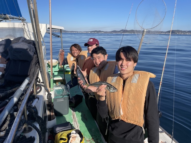 (チダイ)イナダ 1.20~1.70kg 2~10匹 イトヨリ ソーダガツオ サバ キントキ カサゴ ヒメコダイ イナダ冬の陣開幕! どれも美味しそうな良型イナダで 貸し竿の方も全員2尾以上釣れて! やってればまだまだ釣れましたが、 サイズが大きいのでクーラーがいっぱいになってきた方もいたので、ほかのものを狙い、イトヨリ、ヒメコダイなど釣れました。 今後も五目釣りではイナダ狙ってみますので 4〜5号ハリスはお持ちになってください。 この間釣れたイナダ脂のってめちゃウマでした! ソーダガツオも美味しくまだまだ釣れてますので狙い目! そんな感じでクーラーずっしりお土産バッチリでした! 本日ご乗船の皆様、ありがとうございました! またのご乗船をお待ちしております。