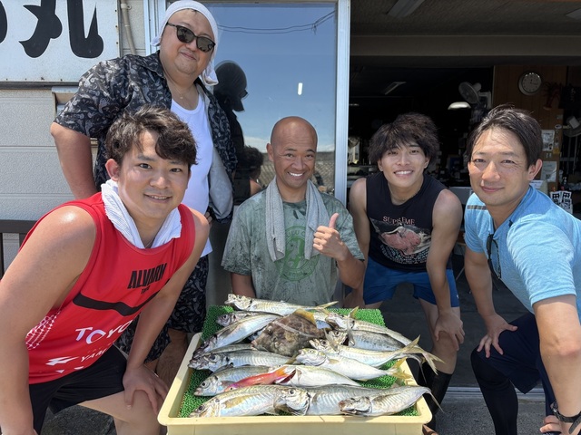 本日もご乗船ありがとうございました。 アジは、小ぶりサイズでしたね。 ヒラメを2尾ゲットした方、 イシダイ3尾釣った方、 クロダイ2尾釣った方、 イラ2キロ、ソーダカツオ、カサゴなども! 明日もよろしくお願いします。