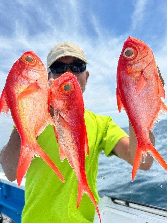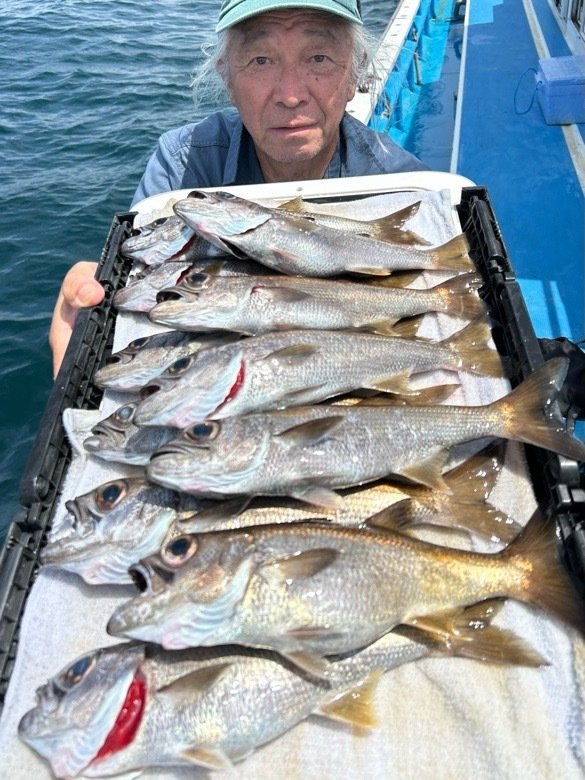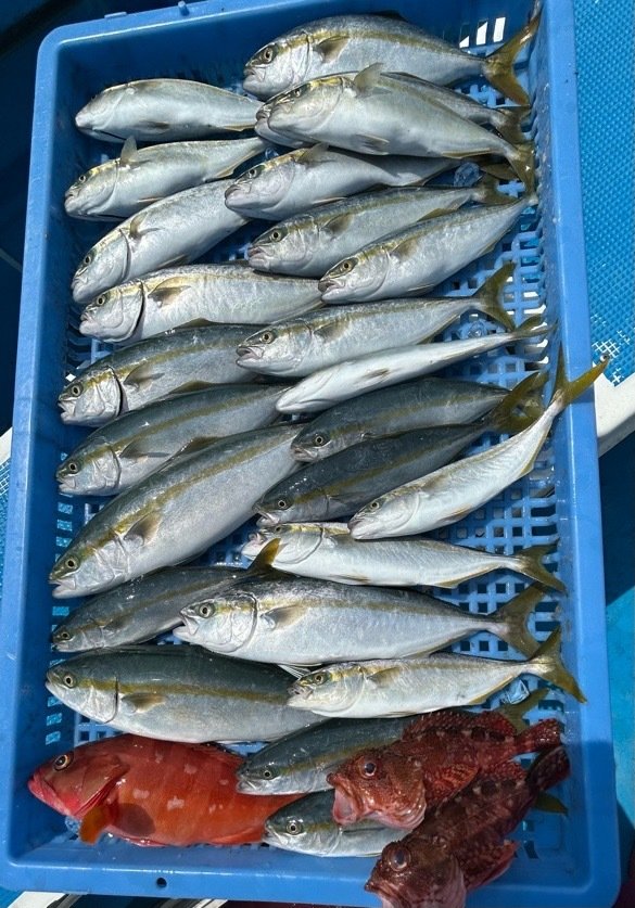 1.00~1.90kg 0~2匹 アマダイ 20~47cm 3~7匹 イナダ 40~48cm 0~3匹 カワハギ 14~27cm 1~10匹 LTアマダイ船。ライト五目(イナダ・アジ)船。カワハギ船。