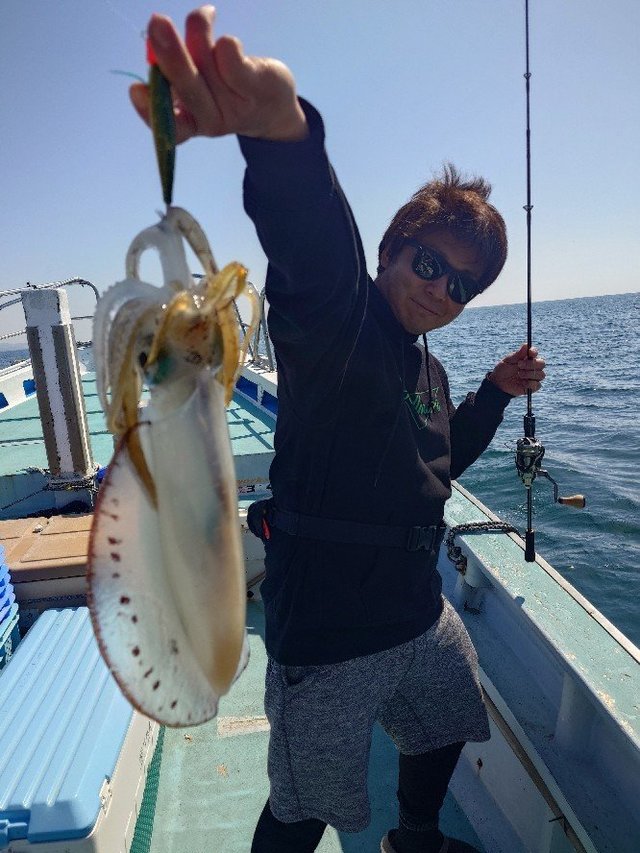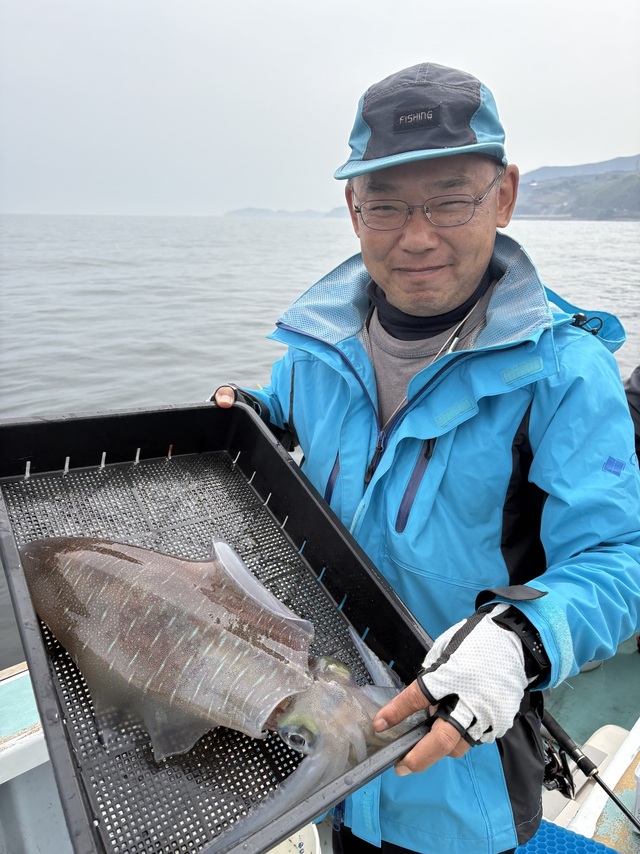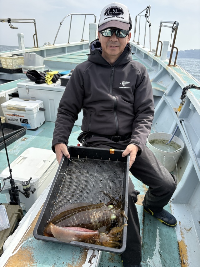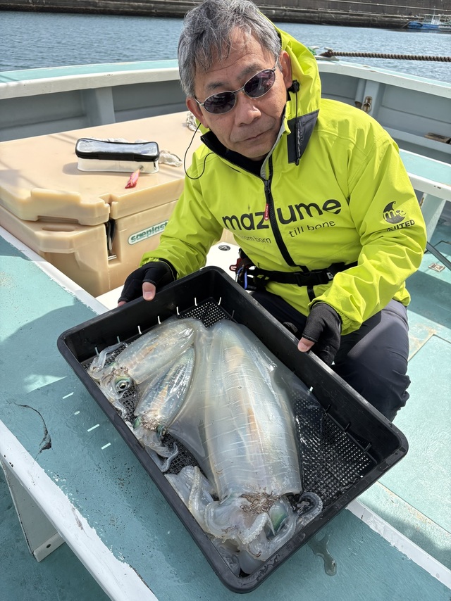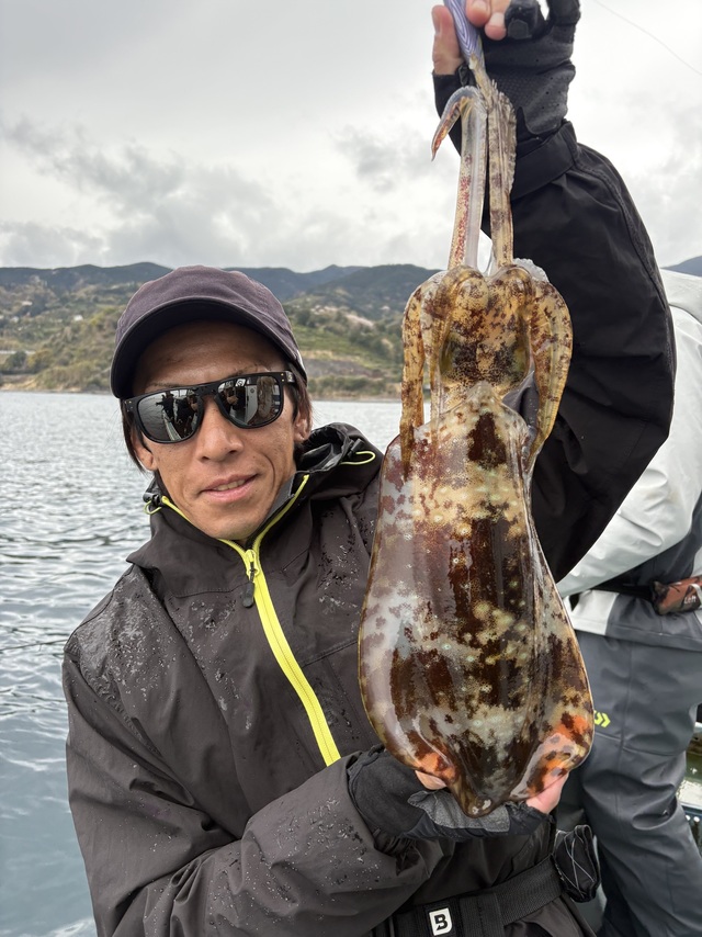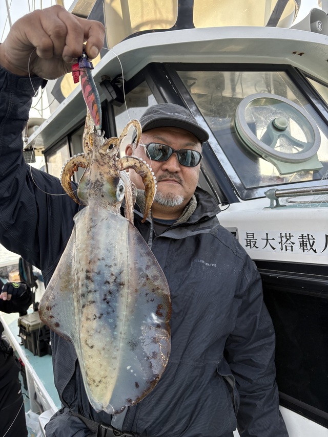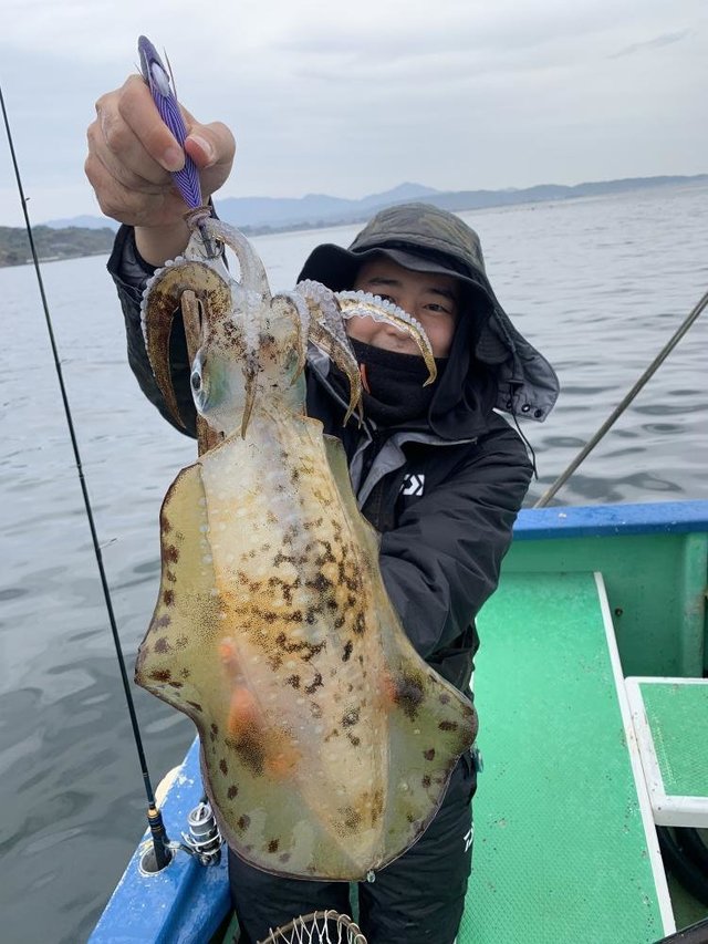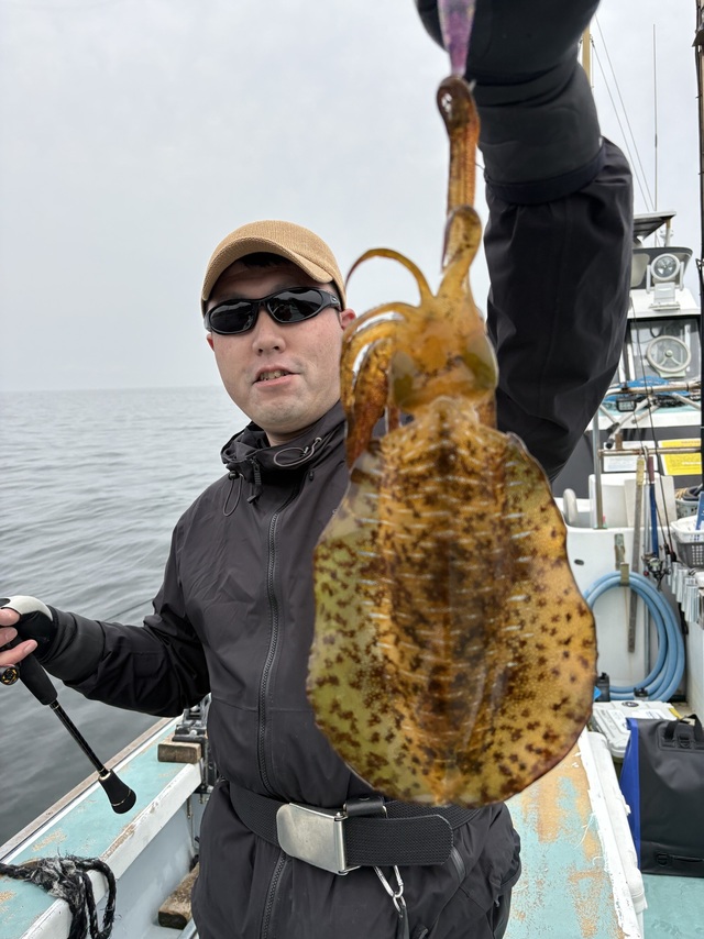 竿頭3匹 コウイカ ティップラン-アオリイカ船です。高波、強風、海上の状況は最悪でした(笑) 頑張って頂きありがとうございます!