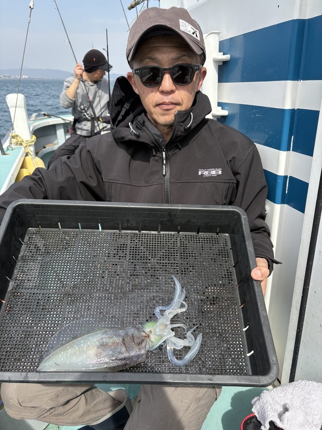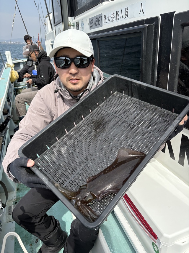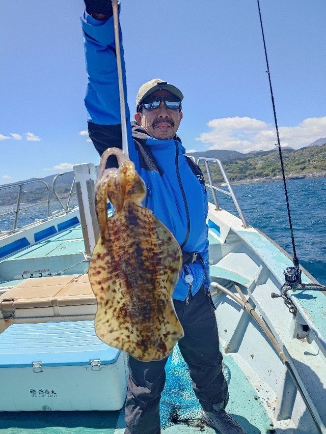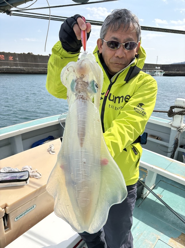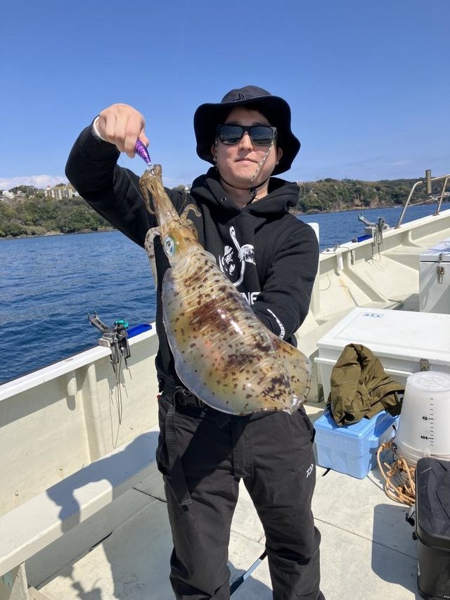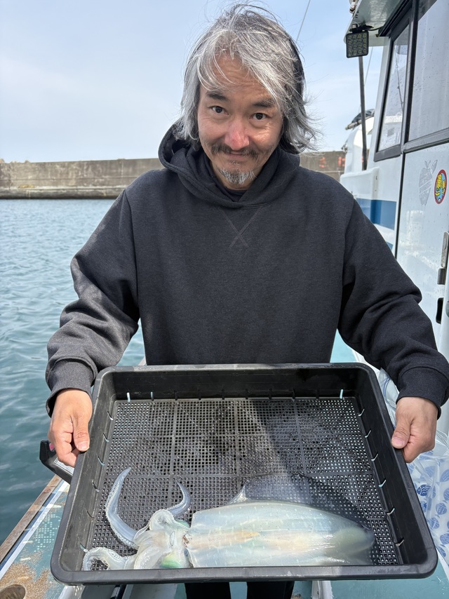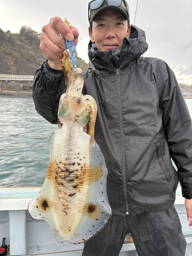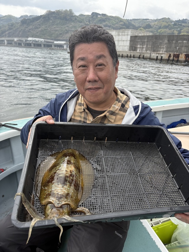 竿頭3匹 コウイカ ティップラン-アオリイカ船です。高波、強風、海上の状況は最悪でした(笑) 頑張って頂きありがとうございます!