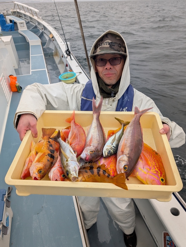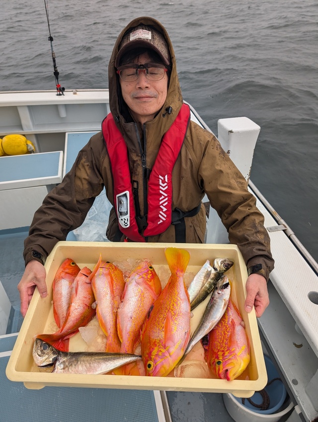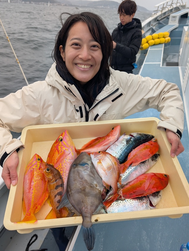 (マアジ)23~38cm 1~9匹 アマダイ 30~40cm 0~1匹 ウィリー&アマダイ五目アマダイ30~40㎝0~1枚アジ23~38㎝1~9匹ハナダイオニカサゴサバEtc 朝の内はやや苦戦しましたが日中にかけて次第にアタリも多くなりターゲットのハナダイアマダイも顔を見ることが出来ましたゲストにはアジサバオニカサゴと皆さんお土産はバッチリキープで帰港です! チャーター船 海上は穏やかでコンデションもまずまずでしたリクエストのハナダイアマダイ始めアジサバEtcと釣りガールの皆さんにも楽しい時間を過ごして貰えて良かったです!