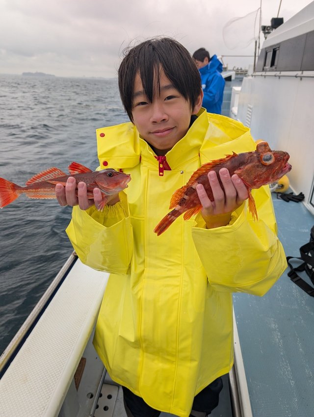 (マアジ)22~36cm 15~43匹 イシダイ 0.30~0.30kg 合計2匹 本日もご乗船ありがとうございました。 アジ快調! 中型アジでいっぱい! イシダイは、お子さまがゲット! アヤメカサゴ、サバ、ムシカレイ。 明日もよろしくお願いします。 2隻出船いたします。