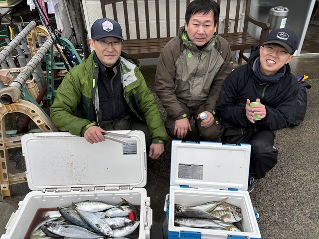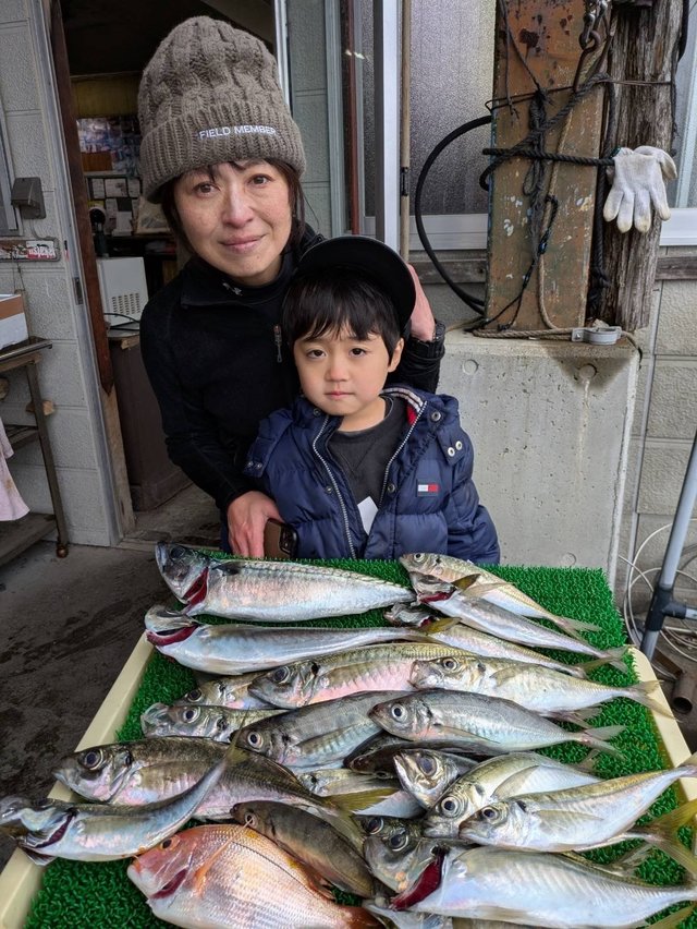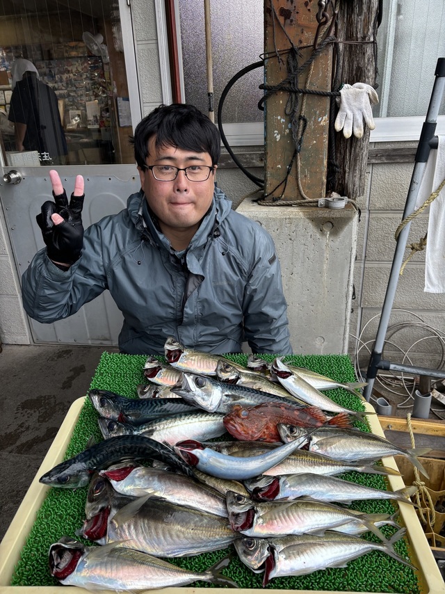 (マアジ)23~35cm 10~28匹 サバ 30~40cm 2~8匹 ハナダイ ホウボウ カサゴ クロムツ 今日もご乗船有り難う御座いました。 暖かな陽気海上穏やか!南西風は帰り際に 朝スタートタイ狙うも待ちきれず良型ハナダイのみ早々アジ釣りへと。 良型マアジがぽつぽつ後良型中型サイズがぽつぽつ時に2匹3匹掛け良型サバとマアジの組み合わせ。 あたり頻ぱん飽きない釣りを楽しく過ごし港へ13時帰港とアジは色艶◎美味しいですサバも!