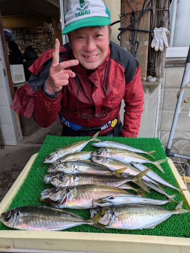 (マアジ)15~38cm 13~44匹 サバ ビシアジ船。 良型主体でお土産十分でした! 明日は悪天候予報の為休船です。 明日以降は凪が続く予報です! ご予約お待ちしてます〜!