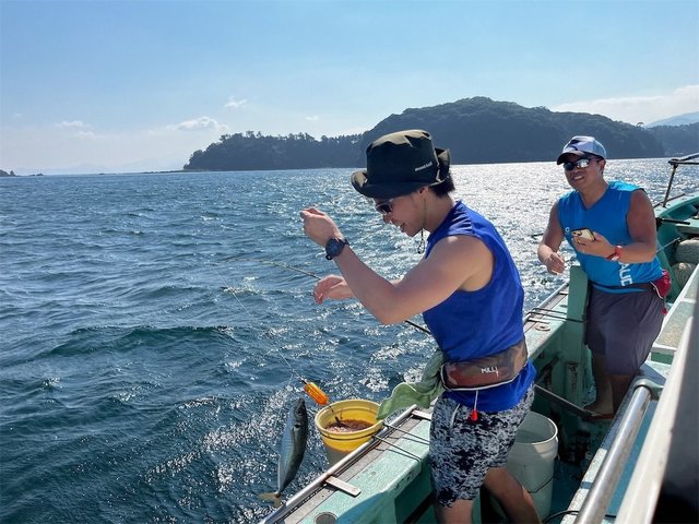 (マアジ)18~35cm 6~30匹 イナダ 38~45cm 1~5匹 本日も暑い中、ご乗船ありがとうございました。 アジは、小ぶりサイズと大型サイズポツポツとゲットできました! 他は、イナダ、サバ、カンパチ! 初めての方々も、船酔いしながらも イナダやアジをお土産になりました 明日もよろしくお願いいたします。