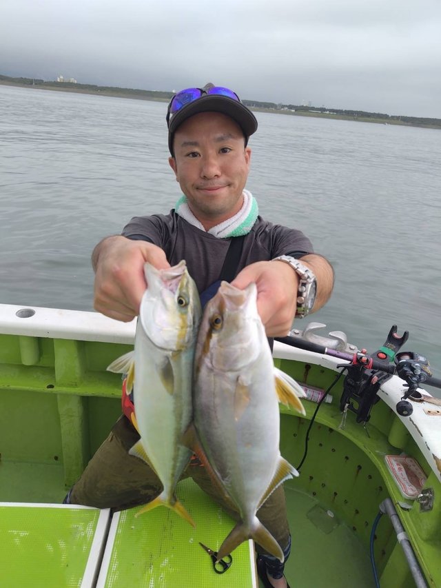 カンパチ イナダ オオモンハタ 合計2匹 メジナ 最大1.70kg スマガツオ カサゴ 0~3匹 イサキ ウルメイワシ ソウダカツオ ワカシ 今日も、ご乗船有り難う御座いました。 カンパチ・イナダ良い感じ! あちこち始まっちゃう喰いは船頭さんすこぶる楽しく!! タモ付け2人係では間に合わず水面ポチャリも多々あり!