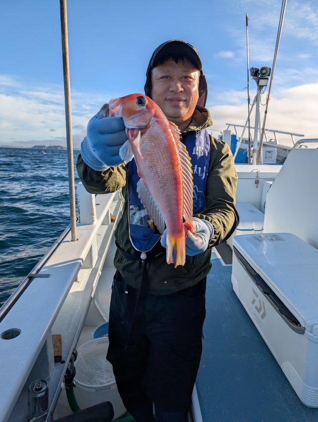 (マアジ)アマダイ 28~41cm 合計6匹 風なく波もなく凪でした。 スタートのポイントで大アジ数匹とイトヨリ小型ハナダイ 次のアジのポイント1ビシ目アジ3匹掛け掛かるも潮流れが2枚潮で棚を取るのが今日はお客さん2人大変なので移動しウルメイワシとサバが釣れましたがやはり2枚潮、、断念その後コマセカゴ外しシロアマダイ狙い遊びに変更し船中6枚(28〜41cm)とりあえず型見れて!仕掛けはウィリー仕掛けでしたのでアマダイ仕掛けに変えてみたらまたどうだったかなとまたシロアマダイポイントの潮が流れてればと思いつつ、、お客様アマダイ初めて釣ったそうで良かったアジもデカいアジとビックリしてくれて良かった。 明日も凪です? お席ゆったりしてます。 是非お客さん遊びに来て下さい! 週末もゆったりしてます。