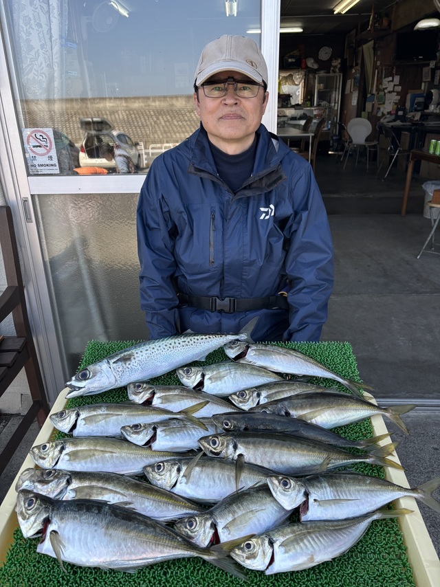 (マアジ)17~34cm 2~15匹 クロダイ 1.20kg 合計1匹 イラ 1.40kg 合計1匹 本日もご乗船ありがとうございました。 今日は、2隻出船しました。 アジは、ポツポツと、大、中、小サイズまじり。 クロダイや、イラ、カイワリ、アマダイ、シロアマダイ、カサゴ、サバ多数、ハタ、メバル、トラギス、アヤメカサゴなど。