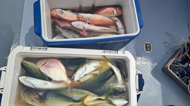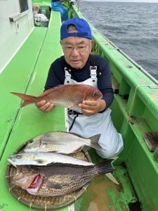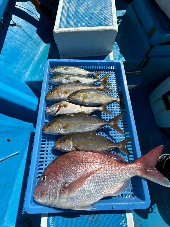 マダイ ハナダイ 0~2匹 アマダイ 20~40cm 0~5匹 ワラサ 3.50kg イナダ イトヨリ ホウボウ 今日はタイ五目乗合船で出船しました! 朝から、イナダ、マダイ、ハナダイゲット! その後も、マダイ顔見れたり 3.5kgのワラサなども! アマダイ狙った方は アマダイ5尾釣れて 良型も釣れました! 本日ご乗船の皆様、ありがとうございます! またのご乗船をお待ちしております。