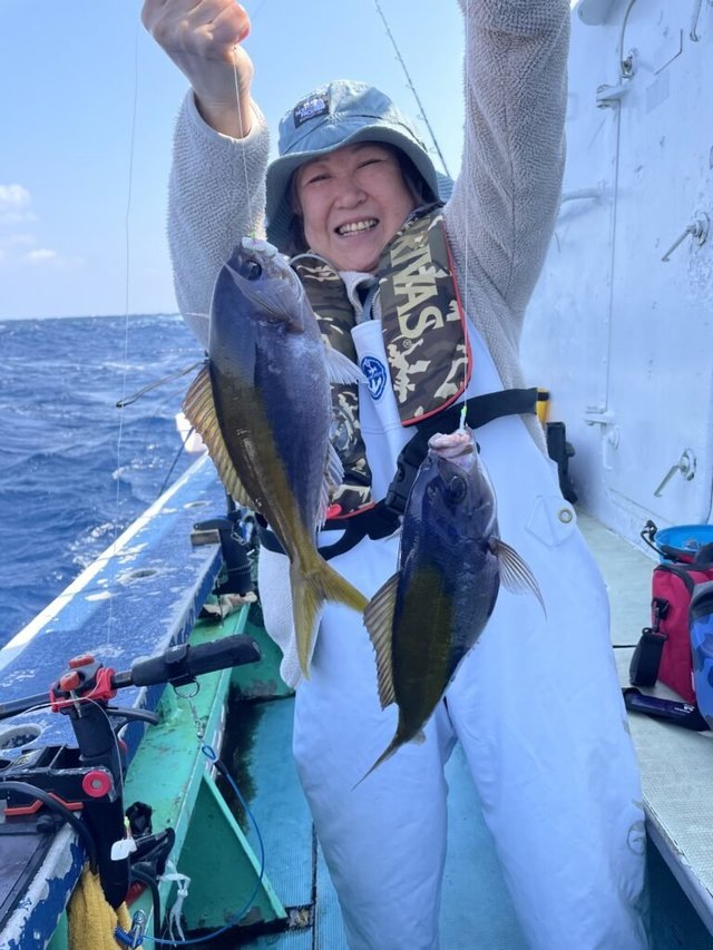 本日12/20(土)は、『遠征ジギング (トンジギ・キハダ・カンパチ・ヒラマサ・マハタ)&キャスティング』へ出船致しました。 北東風そよそよの良い凪に恵まれました♪ 『チカメキントキ』から始まり、 『カンパチ』、『ハチジョウアカムツ』と続いて小山さんの1人勝ちかと 思われましたが、門田さんの自己記録更新UPの『ヒラマサ』で締め括られた 1日でした♪ 門田さん、おめでとうございました♪ 『ハチジョウアカムツ』が釣れた流しでは『オナガダイ』も出ました♪ キハダは時折反応通りましたが、 何れもスルーでした。。 本日も皆さんお疲れ様でした♪ ーーーーーーーーーーーーーーーーー 12/24(水)『遠征ジギング(トンジギ・ キハダ・カンパチ・ヒラマサ・マハタ)&キャスティング(中深海)』乗合 5名様募集中! お問い合わせ下さい。 12/27(土)『遠征ジギング(トンジギ・ キハダ・カンパチ・ヒラマサ・マハタ)&キャスティング(中深海)』乗合 あと5名様募集中! お問い合わせ下さい。 12/28(日)『遠征ジギング(トンジギ・ キハダ・カンパチ・ヒラマサ・マハタ)&キャスティング(中深海)』乗合 あと5名様募集中! お問い合わせ下さい。 12/29(月)『遠征ジギング(トンジギ・ キハダ・カンパチ・ヒラマサ・マハタ)&キャスティング(中深海)』乗合 あと5名様募集中! お問い合わせ下さい。 12/30(火)『遠征ジギング(トンジギ・ キハダ・カンパチ・ヒラマサ・マハタ)&キャスティング(中深海)』乗合 5名様募集中! お問い合わせ下さい。 12/31(水)『遠征ジギング(トンジギ・ キハダ・カンパチ・ヒラマサ・マハタ)&キャスティング(中深海)』乗合 5名様募集中! お問い合わせ下さい。 1/1(木)募集中! お問い合わせ下さい。 1/2(金)募集中! お問い合わせ下さい。 1/3(土)泳がせマグロチャーター 1/4(日)泳がせマグロチャーター 1/5(月)泳がせマグロチャーター 1/6(火)泳がせマグロチャーター 1/7(水)泳がせマグロチャーター 1/8(木)泳がせマグロチャーター 1/9(金)募集中! お問い合わせ下さい。 その他記載されていない全ての日も 随時募集中ですのでお問い合わせ下さい。 乗合、チャーターどちらも募集中です。 何卒宜しくお願い致します。 ーーーーーーーーーーーーーーーーー 【2026年(令和8年)の1月・2月・3月・ 4月・5月の『泳がせマグロ』& 『ルアーマグロ』募集中!!】 【水産庁クロマグロの部屋】 https://www.jfa.maff.go.jp/j/yugyo/y_kuromaguro/kyouryokuirai.html ーーーーーーーーーーーーーーーーー ・トンジギ(ビンチョウ)開幕!! ・キハダジギング!! ・東西遠征中深海アカムツ・アラ!! ・南伊豆沖の遠征&近海(でも遠い) 『遠征ジギング&キャスティング』 へ出船中です!! トンジギ(ビンチョウ)・キハダジギング狙いの御方は、最低タックルがPE4号リーダー100~80lbです。 このタックルでビンチョウマグロ(トンボ)は勿論の事、カツオ、キハダ30~50kg級まで狙えます。 カンパチ・ヒラマサ、オナガダイ・ オオクチハマダイ・マハタ等も狙えます。 キハダのアベレージサイズが50~60kg級になっている時は迷わずPE5号リーダー120~110lbです。 カンパチ&ヒラマサジギングで、大型を狙う時や、PE4号リーダー100~80lbタックルでは不安な御方はコチラ! キハダかメバチの最大クラス80~100kg級狙いは、PE6号リーダー130lb位です。 デカカンパチ&デカヒラマサの 1発大物狙いもコチラ!! (採捕枠がある時)のマグロ狙いはPE10~12号で宜しくお願い致します。 ーーーーーーーーーーーーーーーーー 皆様に支えられて、感謝感謝の毎日です♪ 南伊豆手石港第8寿広丸(ジュコウマル) 《ご予約・お問い合わせ》 TEL090-3387-7630タカ船ちょ!(三俣=ミマタ) HPhttps://no8jukomaru.com/ LINE公式アカウントhttps://lin.ee/2tnezGq #寿広丸 #御蔵島 #ヨコヅナイワシ #キハダ #キハダマグロ #マグロ #ジギング #キャスティング #トンジギ #ビンチョウマグロ #遠征 #南伊豆 #手石港 #ヒラマサ #カンパチ #マハタ #オナガダイ #スロージギング #深海 #中深海 #アカムツ #クロムツ #キンメ #ベニアコウ #アブラボウズ #イシナギ #メバチ #キャスティング