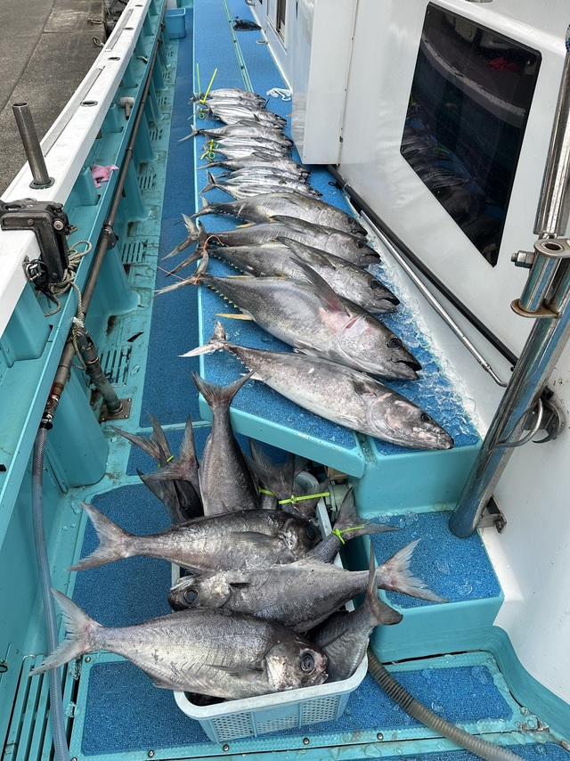 本日7/20(日)は、遠征ジギング& キャスティングへ出船致しました。 本日は前々日の緑色のやや濁りの潮ではなく、前日の青っぽい澄んだ潮でもなく、その中間的な潮色でした。 本日は前半戦も後半戦も『カンパチ・ヒラマサ(オナガダイ・オオクチハマダイ・マハタ)』狙いでした。 本日の大型ヒラマサは3ヒット0ゲットでした♪ 残念無念。。 魚が大きいので、次回は更なる 最強タックルでリベンジ果たしましょう!! キハダは狙っておりませんでしたが 気を利かせて頂き大キメジ1本頂きました!! 本日も皆さんお疲れ様でした。 明日7/21(月)も遠征ジギング&キャスティング乗合へ出船致します。 あと4名様募集中です。 お問い合わせ下さい。 何卒宜しくお願い致します。 7/23(水)遠征ジギング&キャスティング乗合 あと5名様募集中! お問い合わせ下さい。 その他記載されていない全ての日も 随時募集中ですのでお問い合わせ下さい。 乗合、チャーターどちらも募集中です。 何卒宜しくお願い致します。 ーーーーーーーーーーーーーーーーー 【2026年(令和8年)の1月・2月・3月・ 4月・5月の『泳がせマグロ』& 『ルアーマグロ』募集中!!】 【水産庁クロマグロの部屋】 https://www.jfa.maff.go.jp/j/yugyo/y_kuromaguro/kyouryokuirai.html ーーーーーーーーーーーーーーーーー 南伊豆沖の遠征&近海(でも遠い) 『遠征ジギング&キャスティング』へ出船中です!! ターゲットは、『マグロ』、『キハダマグロ』、『メバチマグロ』、『ビンチョウマグロ(トンボ)=トンジギ』、『カツオ』、『カンパチ』、『ヒラマサ』、『マハタ(カンナギ)』、『イヤゴハタ・ホウキハタ』、『オナガダイ(ハマダイ)&オオクチハマダイ』『モロコ』etc.トンジギ(ビンチョウ)&キハダジギング&キャスティングへ出船中です!! トンジギ(ビンチョウ)・キハダジギング狙いの御方は、最低タックルがPE4号リーダー100~80lbです。 このタックルでビンチョウマグロ(トンボ)は勿論の事、カツオ、キハダ30~50kg級まで狙えます。 カンパチ・ヒラマサ、オナガダイ・ オオクチハマダイ・マハタ等も狙えます。 キハダのアベレージサイズが50~60kg級になっている時は迷わずPE5号リーダー120~110lbです。 カンパチ&ヒラマサジギングで、大型を狙う時や、PE4号リーダー100~80lbタックルでは不安な御方はコチラ! キハダかメバチの最大クラス80~100kg級狙いは、PE6号リーダー130lb位です。 デカカンパチ&デカヒラマサの 1発大物狙いもコチラ!! (採捕枠がある時)のマグロ狙いはPE10~12号で宜しくお願い致します。 ーーーーーーーーーーーーーーーーー 皆様に支えられて、感謝感謝の毎日です♪ 南伊豆手石港第8寿広丸(ジュコウマル) 《ご予約・お問い合わせ》 TEL090-3387-7630タカ船ちょ!(三俣=ミマタ) HPhttps://no8jukomaru.com/ LINE公式アカウントhttps://lin.ee/2tnezGq #寿広丸 #御蔵島 #ヨコヅナイワシ #キハダ #キハダマグロ #マグロ #ジギング #キャスティング #トンジギ #ビンチョウマグロ #遠征 #南伊豆 #手石港 #ヒラマサ #カンパチ #マハタ #オナガダイ #スロージギング #深海 #中深海 #アカムツ #クロムツ #キンメ #ベニアコウ #アブラボウズ #イシナギ #メバチ #キャスティング