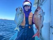 1.00~2.20kg 0~3匹 クロムツ 24~36cm 1~4匹 午前の釣果 クロムツ、メダイ、マダイ五目 前半クロムツ、メダイ狙い、後半マダイ五目船 マダイは型見れず、イサキ頭で23匹、メジナ、ウメイロが混じりました。