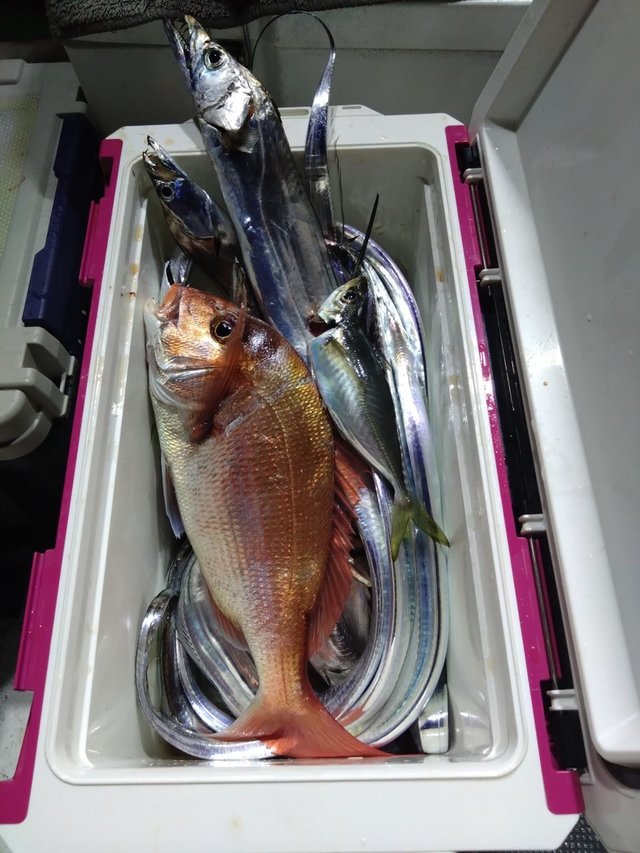 久しぶりのアジ狙いでしたが、良い感じにデカアジ大漁! 太刀魚はちょい活性が弱く、トップ25匹前後でした。 お疲れ様でした。