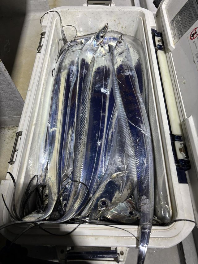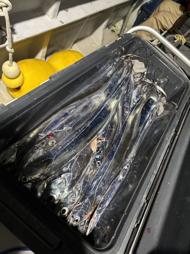 太刀魚オンリーで出船。 今日は少し魚影が薄かったです。 釣果は良くもなく悪くもなく、、 テンヤとジギングで、明らかにサイズの違いがありました。