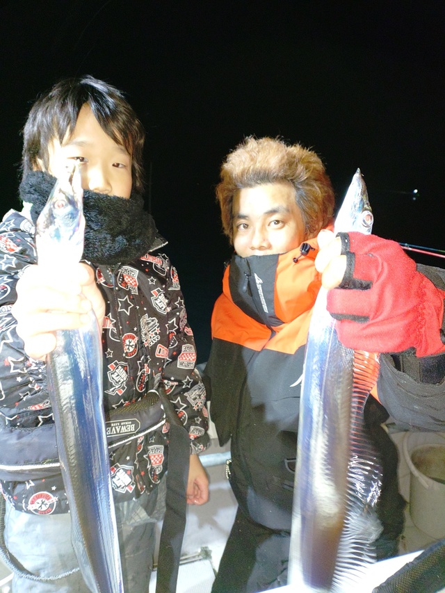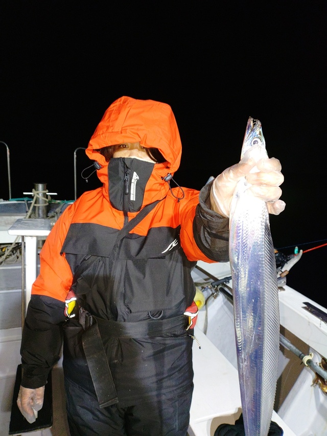 本日は太刀魚にて出船しました。前半ポツポツ~明け方食い食い、後半潮悪くポッツポツでサイズアップ。餌釣りは47本~10本。テンヤは28本。ジギングは30本~7本・F4.5~F3.0。餌釣りトップは清水区の荻野様。ジギングトップは焼津市の田中様。