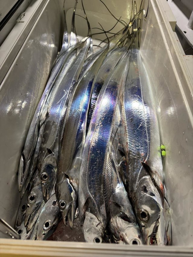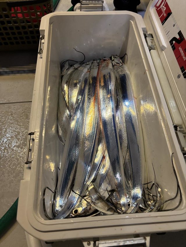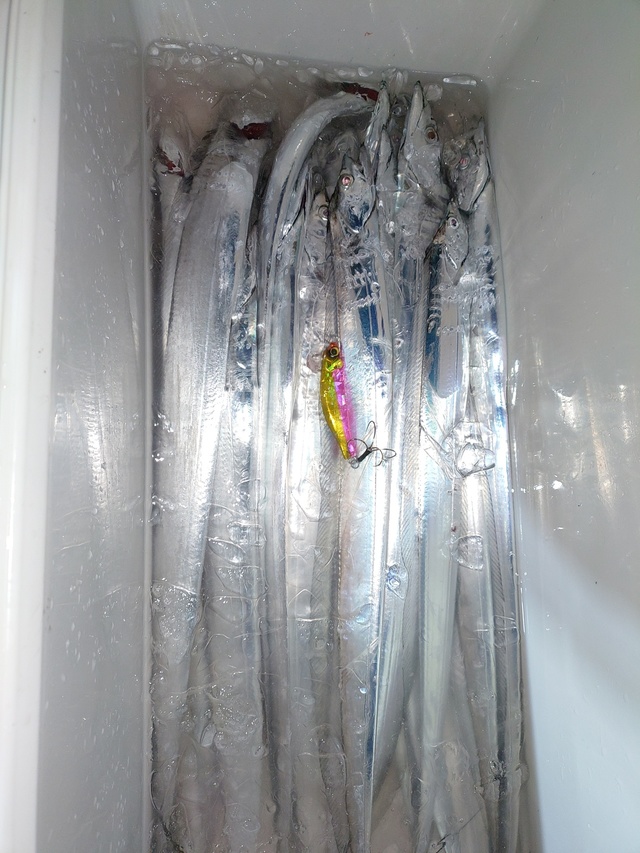 太刀魚オンリーで出船。 群れ小さく散らかってました。 最大F7でしたが、なんだかテンヤでも細いのが目立ちました。 釣った人で20匹前後、オンリー便としては少ないですね。 本日もご乗船ありがとうございました。 また宜しくお願いします。