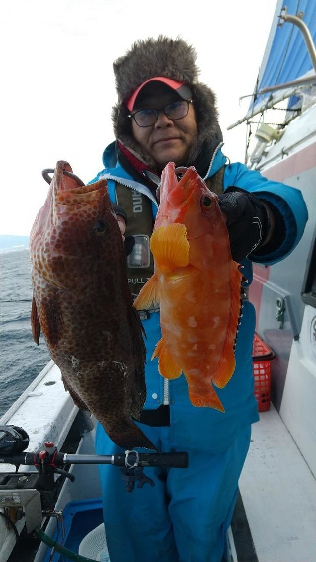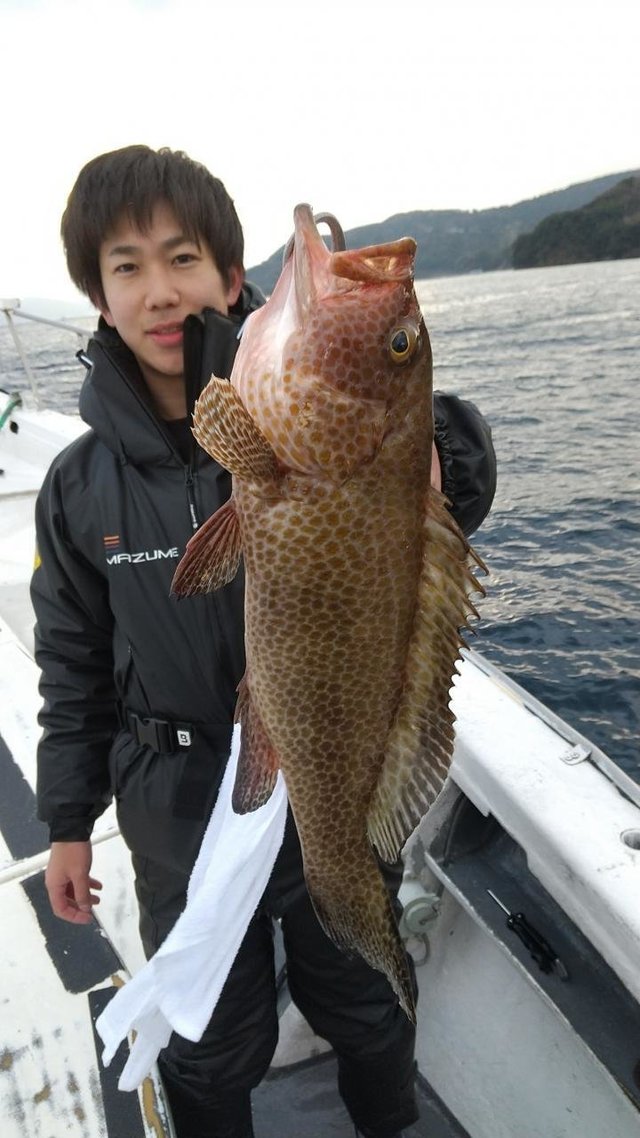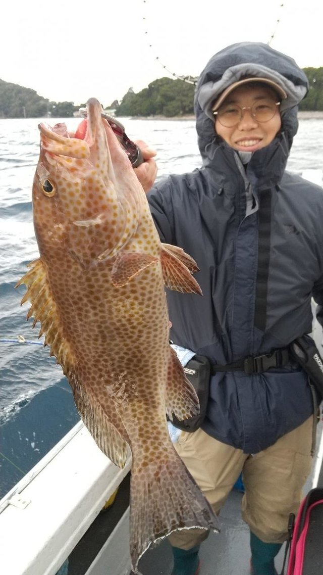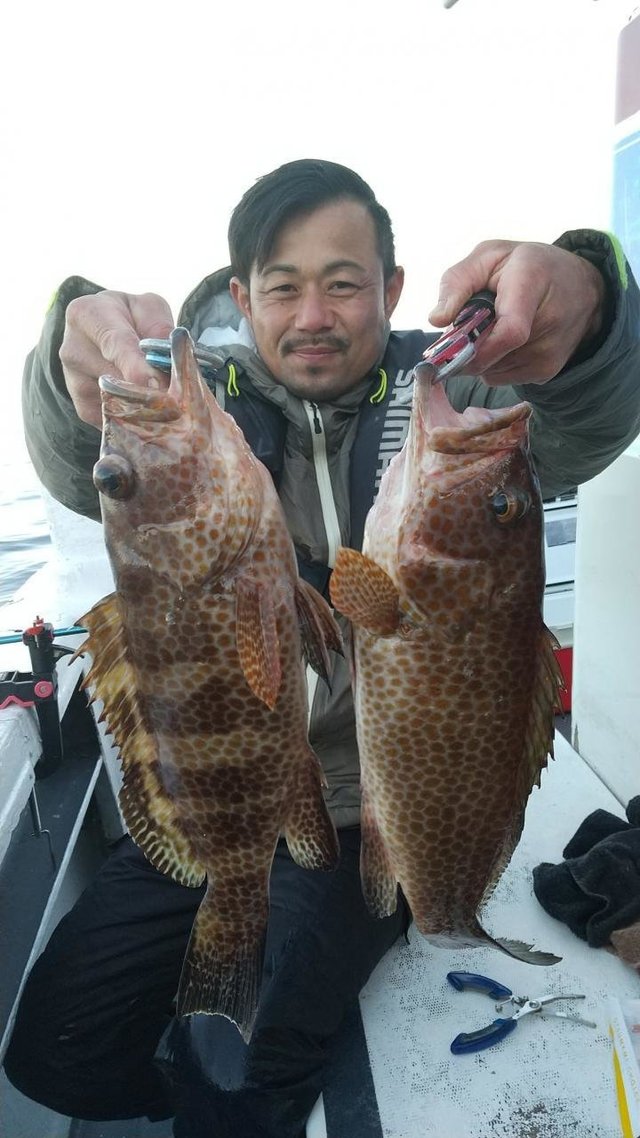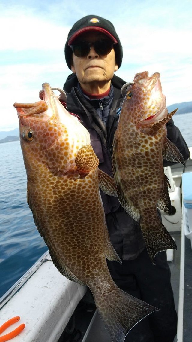 オオモンハタ 合計7匹 カサゴ 午後泳がせ釣り(イワシ)。 後半当たりオオモンハタ(良型中心)船中7匹、 他アカハタ・カサゴ。 変則で午後出船。