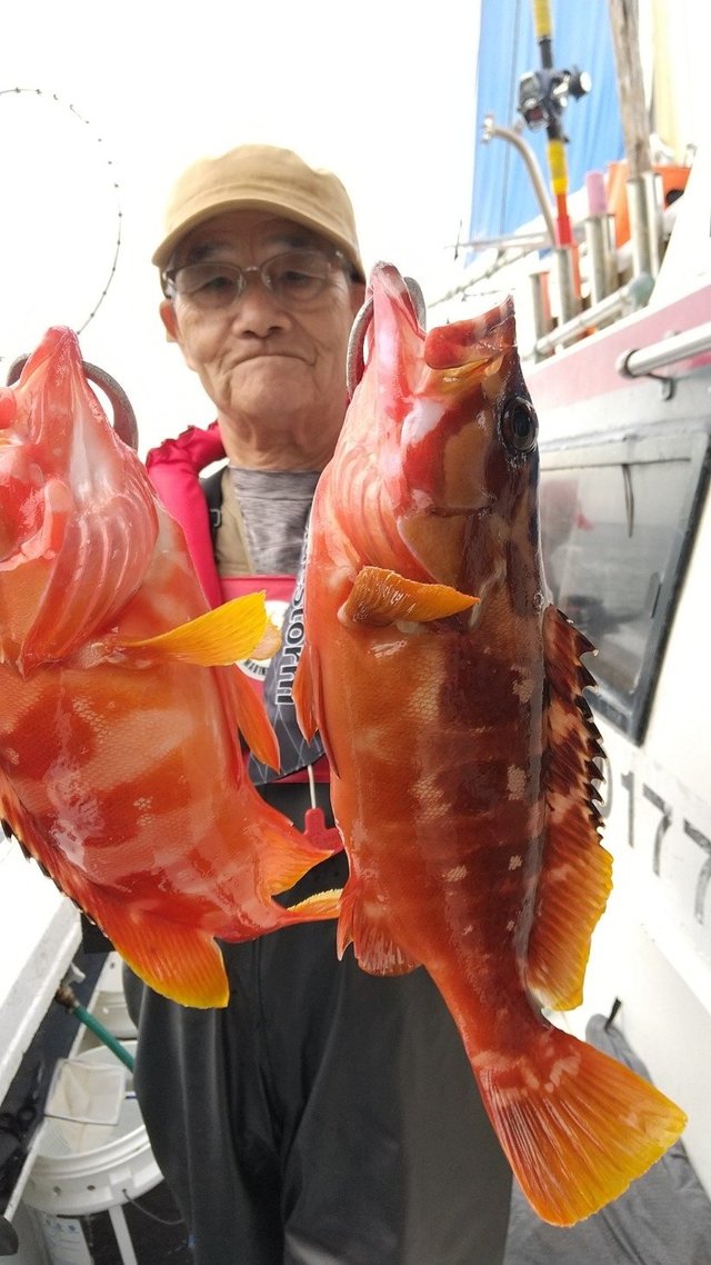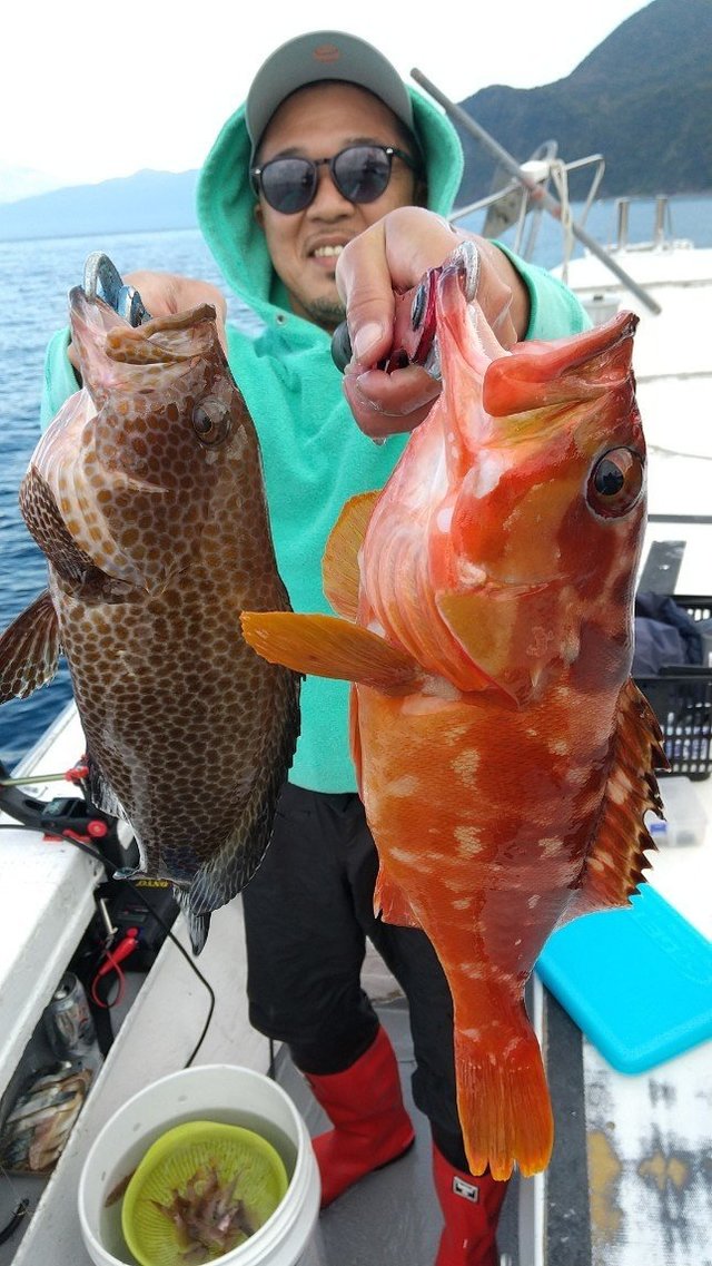 オオモンハタ イナダ カンパチ カサゴ 午前泳がせ釣り(アジ)。 オオモンハタが良型混じりで船中7匹。 他イナダ・カンパチ・アカハタ・カサゴ。 潮流れ不足でしたがポツポツ・・ 泳がせと喰わせサビキで狙う。 エサのアジは喰い良かったです。