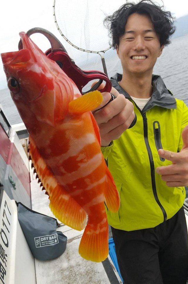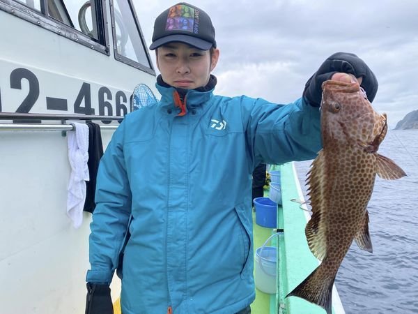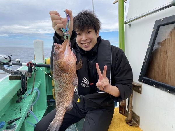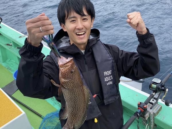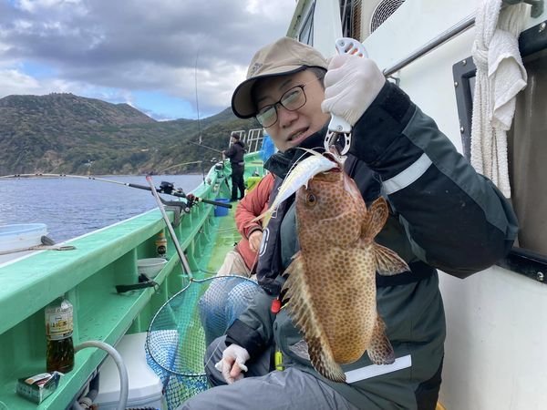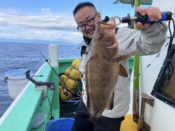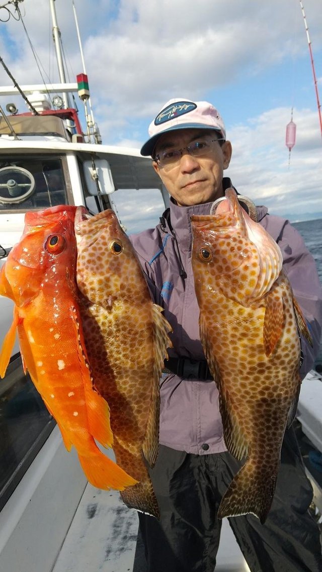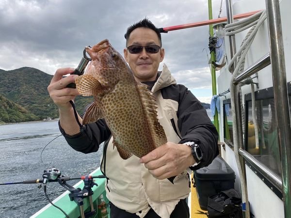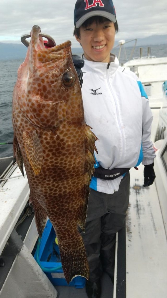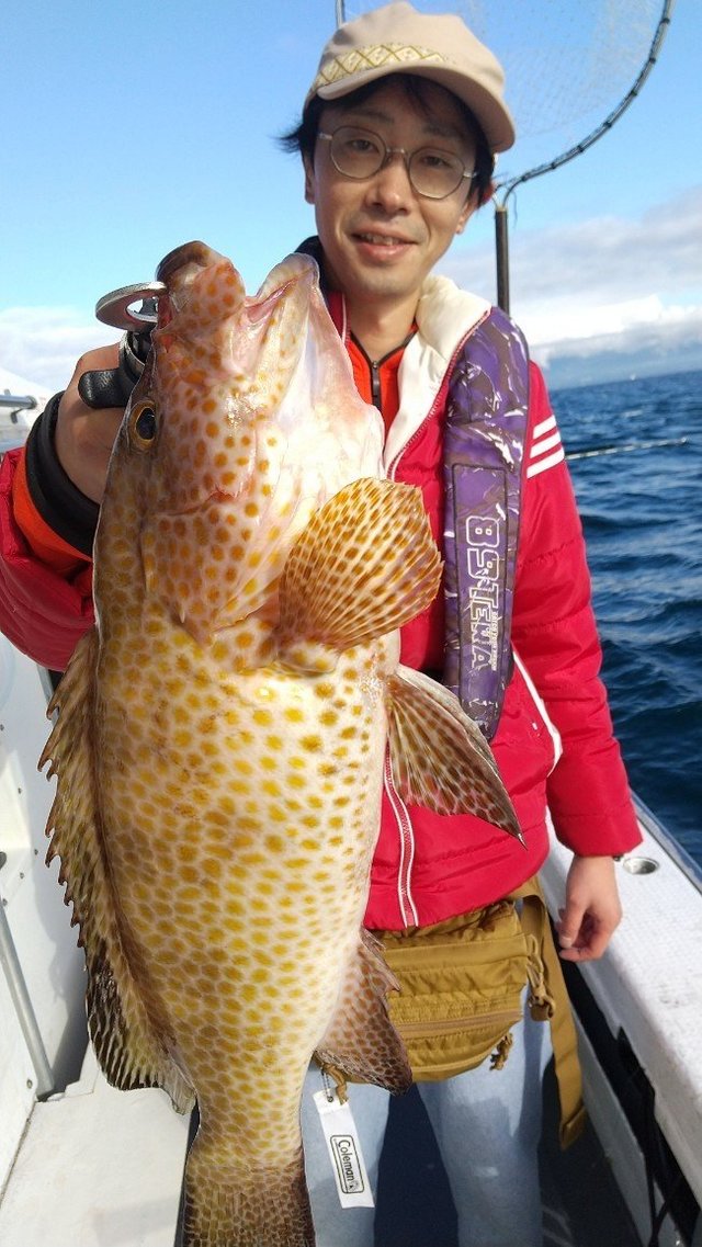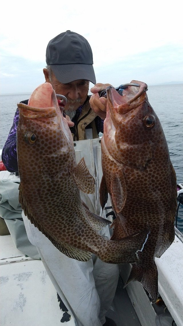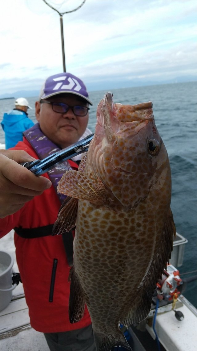 オオモンハタ 午前船。ロックフィッシュ。 今季初のボートロック。 いつもお世話になっている。 県庁の水産振興課、水産技術研究所(焼津、浜名、富士養鱒場)の方々のチャーター船でした。 毎年恒例の遠足で。 遊びになんのか採捕になんのか。 良いところできました。 小型が多い中ですがヒットはかなりありました。 お持ち帰りは。3〜8匹と。 小型のリリースありがとうございます。 思い思いの仕掛けで仕事を忘れて楽しんでくれました。