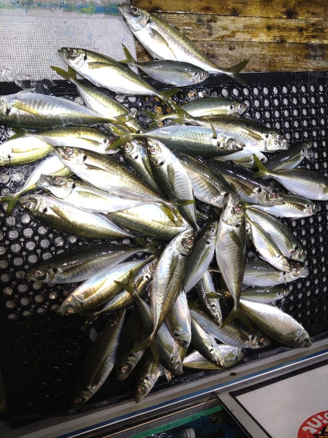 (マアジ)竿頭41匹 ホウボウ サバ 午後船。チャーター。 お仲間さんでのレンタルタックルでの。 お初の釣り。 深場アジで。 良いところできました。 アジ中アジ主体で船中41匹でした。 ホウボウ、サバと混じりました。 しかし雨がきて寒くなり。 早上がりでした。