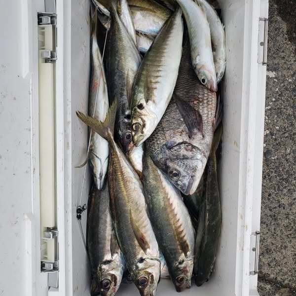 (マアジ)土曜日はマグロ狙いの予定でしたが 近場のタイラバへ変更で出船でした。 釣り初挑戦、船初乗船の職場の仲良しグループが 関東から来てくれました。 ルアーの結び方、ロッドの持ち方、リールの使い方、 底の取り方、ルアーの操作の仕方など、 初歩的な所からレクチャーさせていただきました。 ジギング、タイラバ各々やってみたいものを選んで頂きスタート! 船の揺れにもすぐに慣れていい感じでした。 切られたり逃げられたりで大きな魚がなかなか揚がりませんでしたが、 それでも8目釣れました。 帰ってからみんなで居酒屋で食べるのには少し足らない感じだったかな・・・ 日曜日はチャーターキャンセル入って募集するも人数集まりきらず中止・・・ 数隻のボートがかつお釣ってるようで残念! 天気予報が微妙な感じですが意外に出られる日が多い感じです。 秋の良い季節になってきて魚も美味しくなってきますし活性も高くなってきます。 今週10/23木曜日もジギング、タイラバで募集中です! お問い合わせ、ご予約お待ちしてます。 ブルージャンキー店長&遊漁船ジャンキー船長 横山09070239359 https://www.bluejunkie.jp/junkie/ WEB予約https://forms.gle/nXdBHzwWev6CLdZ36