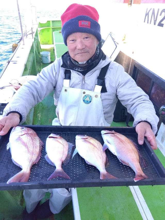 0.50~2.00kg 0~5匹 イシダイ ハナダイ ヒラソウダ イナダ 【真鯛】トップ5枚、2kgの良型真鯛も嬉しいサイズ。 今日は大潮、明日も大潮。 活性は高くて、1kg前後の真鯛もヒットが連発。さらに真鯛を狙いながら石鯛、イナダなども掛かっています。 複数名様が3枚の真鯛をゲット。今日はほとんどの方が真鯛の顔を見ていて、年末に向けて真鯛の活性が上がってきたのは嬉しいところ。