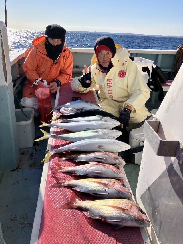 0.50~2.00kg 1~4匹 イナダ 42~52cm 4~9匹 2名様でタイ狙いで出船しました。 午前中でクーラー満杯になり早上がりしました!