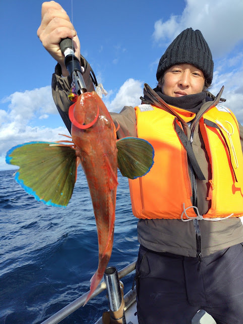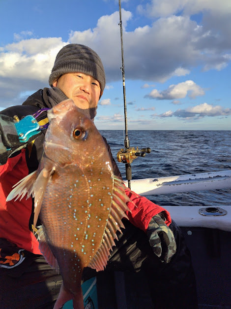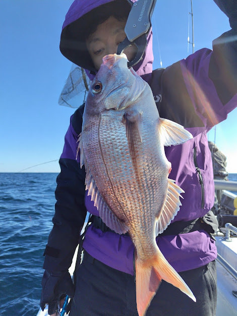 (マダイ)20~30cm 合計4匹 ジガーズ2(J2)にて マダイ五目ジギング チャリコ。20。~30。計4枚。 ホウボウ。 カナガシラ。 ヒラメ。 ガンゾウヒラメ。 ワラサ。 カンパチ。 ゴマサバ。 太サバ。 マハタモドキ。 フグ。 メジマグロ。(リリース) 【水温】16、6℃ 【水色】澄み 【コメント】タチウオ狙うもダメ。マダイもダメ。ホウボウ、カナガシラが目立ちました。お疲れさまでした。