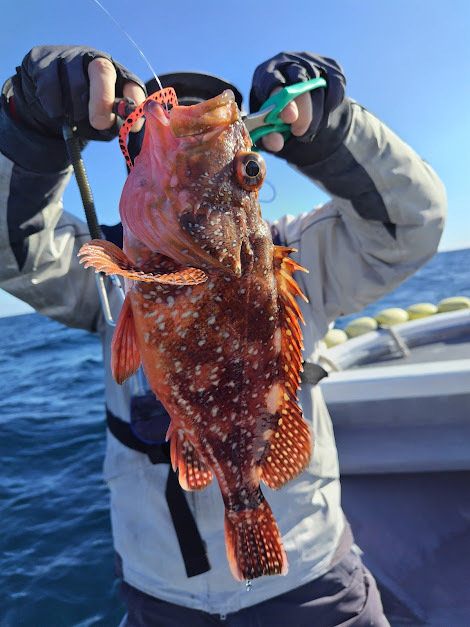 ジガーズ2(J2)にて マダイ五目ジギング マダイ。43。43。47。計3匹。 チャリコ。30。~35。計10匹 シーバス。 クロソイ。 カサゴ。 ホウボウ。 カンパチ。 マハタモドキ。 ショウサイフグ。 トラフグ。 【水温】14、7℃ 【水色】澄み 【コメント】魚探に魚の反応がたくさんあるが、食い渋い。お疲れさまでした。本年中はお世話様でした。来年もどうぞよろしくお願いいたします。