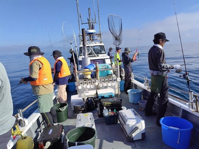 42~50cm 0~3匹 チャリコ(マダイ) 20~30cm 0~2匹 9月23日(火)あらし丸真鯛ジグ・タイラバ船釣果報告 【釣果】 ・真鯛50-45-45-42-40(船中5匹) ・チャリコ(船中10匹) ・イナダ ・ホウボウ ・カナガシラ ・サバ 【天候】晴 【水温】24℃ 【水色】澄 【コメント】 ~真鯛ダービー記録~ 暫定1位77cm(5.8kg) 暫定2位75cm(4.9kg) 暫定3位74cm(4.9kg) 今日のあらし丸は...カチカチ甘噛み真鯛。追わない。掛けてほしいな。 お疲れさまでした!