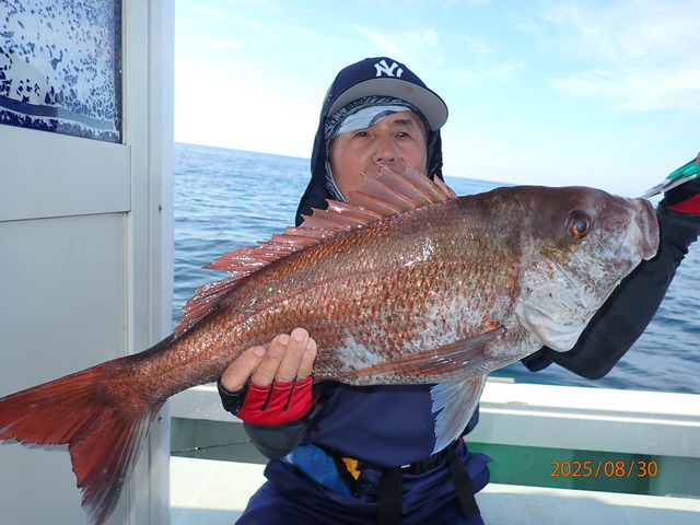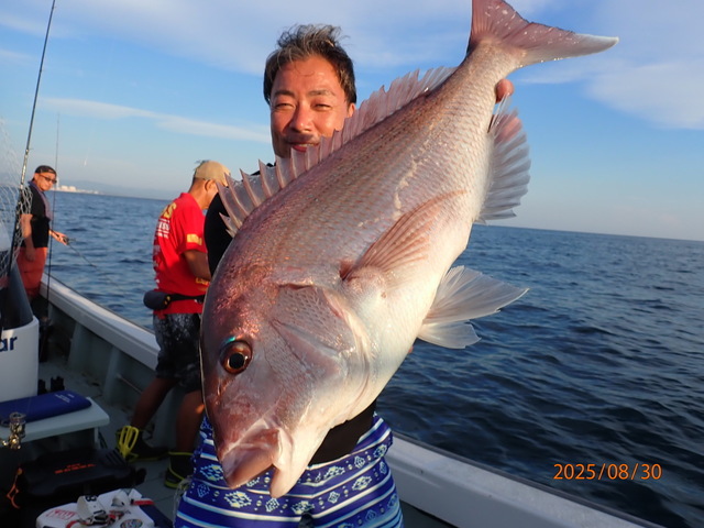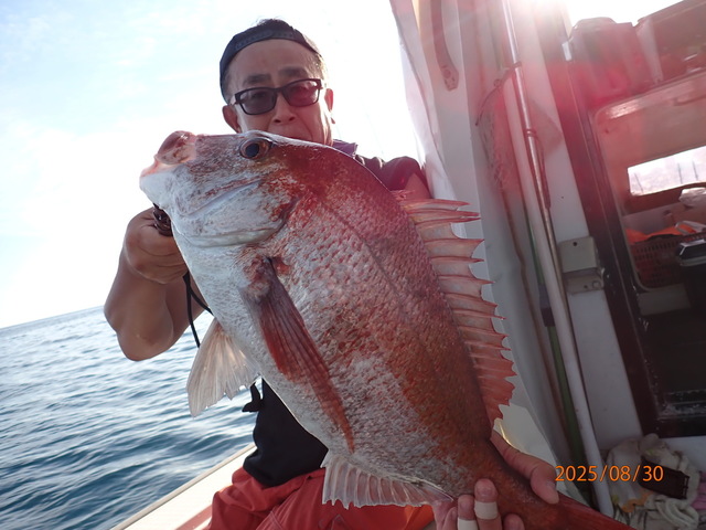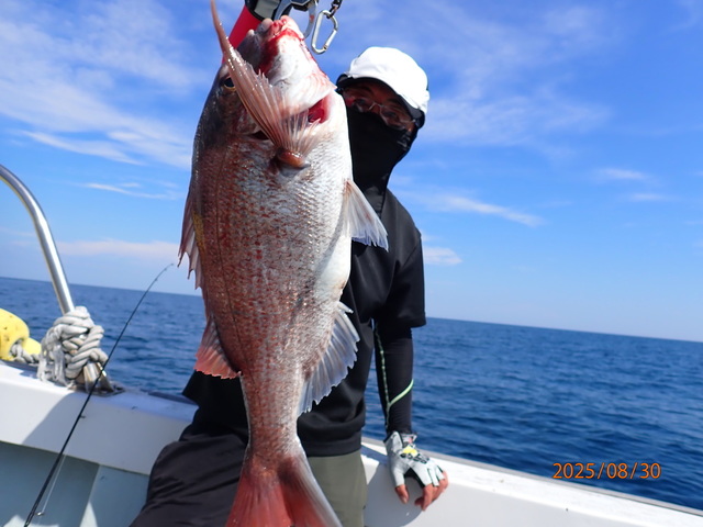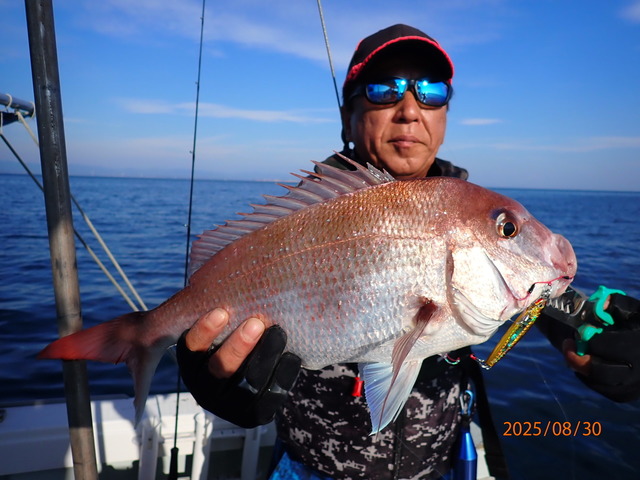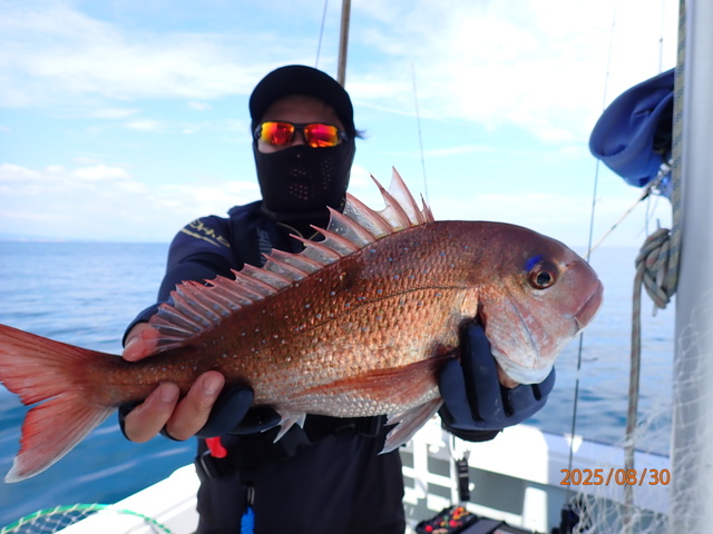 42~57cm 合計2匹 チャリコ(マダイ) 30~38cm 合計11匹 ハナダイ 30~30cm 合計3匹 ジガーズ2(J2)にて マダイ五目ジギング マダイ。42。57。計2枚。 チャリコ。30。~38。計11匹。 ハナダイ。30。~30。計3匹。 ヒラメ。 タチウオ。 ホウボウ。 ショウサイフグ。 カサゴミニ。 カサゴ。 イナダ。 メバル。 ガンゾウビラメ。 ベラ。 キジハタ。 【水温】26、6℃ 【水色】澄み 【コメント】魚種は豊富に釣れました。お疲れさまでした。