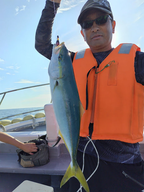 40~60cm 0~1匹 チャリコ(マダイ) 20~30cm 0~1匹 7月13日(日)あらし丸真鯛ジグ・タイラバ船釣果報告 【釣果】 ・真鯛60-47-45-40(船中4匹) ・チャリコ25~35cm(船中3匹) ・ホウボウ ・ヒラメ~60cm(8匹) ・カナガシラ ・トラフグ ・ワラサ ・サバ ・カサゴ 【天候】晴れ 【水温】24.0℃ 【水色】 【コメント】 ~真鯛ダービー記録更新します~ 暫定1位77cm(5.8kg) 暫定2位72cm(5.0kg) 暫定3位68cm(3.5kg) ダービーに変動はありませんでしたが、60cm台の鯛を釣ってもらいました!ありがとうございました。