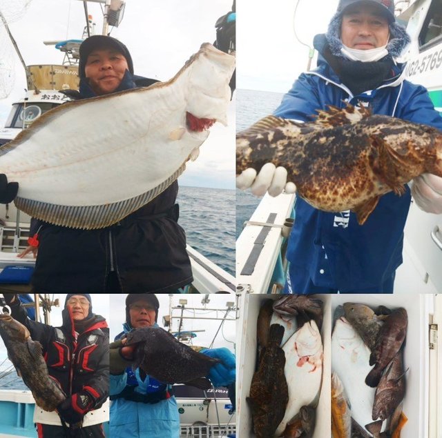 45~55cm 0~6匹 ヒラメ 54~88cm 0~6匹 マゾイ 35~47cm 0~4匹 イシナギ 50~70cm 0~1匹 7月26日(土)豊漁丸ヒラメ船釣果報告 【釣果】 ・ヒラメ54~88cm(船中44匹)※リリース0匹 ・マゾイ35~47cm(船中22匹) ・黒ソイ45~55cm(船中30匹以上) ・イシナギ50~70cm(船中5匹) ・水カレイ ・フグ ・ホウボウ 【天気】晴れ 【水温】22.1℃ 【水色】澄 【コメント】 ~ヒラメダービー開催中~85cmから測定 暫定1位94cm(8.4kg) 暫定2位88cm(6.7kg) 暫定3位86cm(5.6kg) ※更新あり 今日の豊漁丸は久々に『遠征』しました! 皆さん、魚のサイズのポンテンシャルの高さに満足してました!(^^)!リリースは0匹それがまた良かったです~ また明日~ ※自然保護の為、50cm以下のヒラメは放流しています。 50cmに満たないヒラメは速やかにリリースしていただきます。