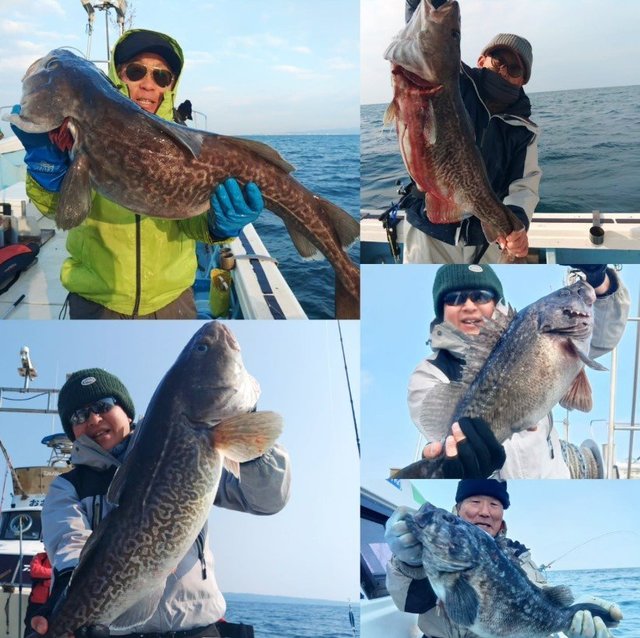 (クロソイ)マダイ 最大67cm サバ イナワラ カナガシラ タチウオ 今日の気仙沼タチウオガイド(ジギングのみ) 昨日とは打って変わって、ベタ凪&タチウオ高活性! 朝イチから良いペースで釣れました。 8時でほぼ終了したので、そこから底物と青物。 ゲスト様お二人チャーター。 タチウオ30本ほど。 楽しかったです!ありがとうございました。
