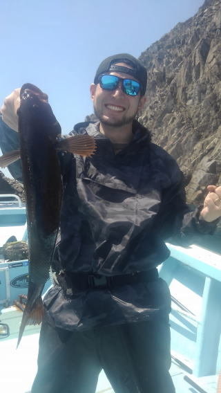 (クロソイ)アイナメ 最大50cm 合計38匹 ムラソイ 本日午前中の気仙沼ロックフィッシュガイド。 今日は曇天のやや南風。 水温低下、水の濁り、曇り空でパッとしない。 その後、この季節はこんな所?って感じでやった事のないポイントに入ったら大当たり。 50ジャストを頭にナイスフィッシュ多数でチビが。 ラッキーしました。 今日は、全体的に釣れてなかったと思います。