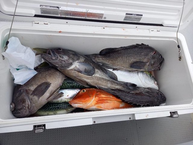 6月19日(木)豊漁丸青物五目船釣果報告 【釣果】 ・マゾイ40~45cm ・黒ソイ45~55cm ・アイナメ ・水カレイ ・ウッカリカサゴ 【天候】晴 【水温】21.6℃ 【水色】澄 【コメント】 青物五目で出ましたが... 船流れず~潮流れず~反応はあるものの喰いは激渋でした。 ※自然保護の為、50cm以下のヒラメは放流しています。 50cmに満たないヒラメは速やかにリリースしていただきます。