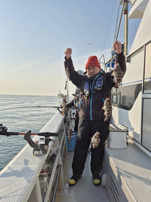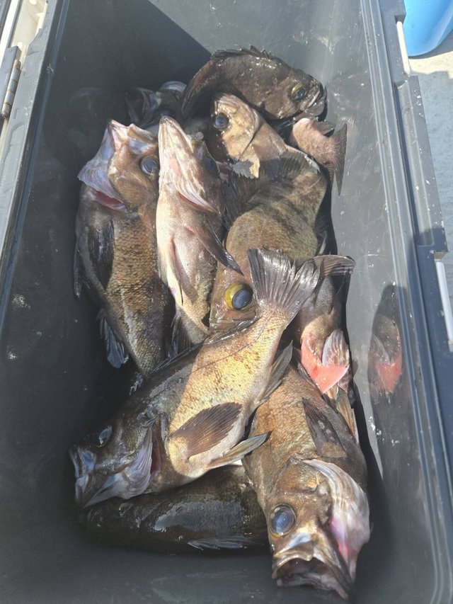 (メバル)15~30cm 60~141匹 2026年は大型企画として乗合船の午前船は、現金でお支払いの方に限り、60歳以上各釣り物1.000円引きになります。 【乗船名簿の年齢記入欄で確認させていただきます】 平日の午前乗合船は、女性半額(ヒラメ船・活き餌五目除く) 沢山のご予約お待ちしております 他に、オキメバル、アイナメ、マゾイが釣れました。 皆さんクーラーいっぱいにしてお帰りになりました。 クロメバル船の釣果。 ご乗船の皆様お疲れさまでした。 ありがとうございます。