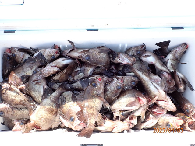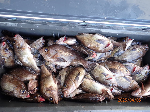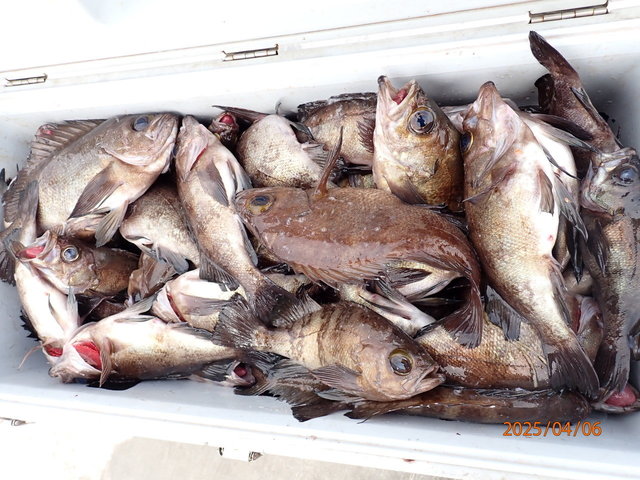 20~34cm 33~100匹 4月13日(日)豊漁丸メバル船釣果報告 【釣果】 ・メバル20~34cm(33~100匹) ・ウッカリカサゴ ・チャリコ ・ヤリイカ 【天候】曇 【水温】12.0℃ 【水色】やや濁り 【コメント】 長い中だるみはあったものの、昨日と違い前半後半食いました。大・特大メバル揃いでした。お疲れさまでした。 ※昨日今日と2日間ヤリイカの姿が見えたので17・18日とメバルとヤリイカリレーで出ます。ご予約お待ちしてます。 ※オススメ仕掛け・オモリ・付け餌当店にあります。