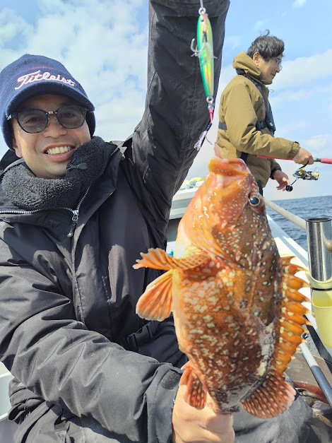 本日は遠方からお越しのお客様、 メバルは釣れましたが期待の大物(マダラ)は相見えるありませんでした しかし破顔のワンショットは東北の海を十分満喫されたようです♪