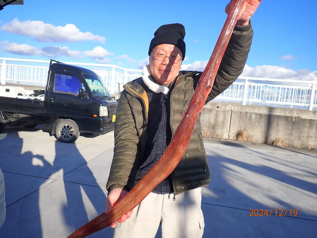12月26日(木)遠征豊漁丸ヒラメ船釣果報告 【釣果】13名乗船 ・ヒラメ55~84cm(5匹) 50cm以下リリース2匹 ・黒ソイ ・マトウダイ ・マゾイ ・ウッカリカサゴ ・赤・黒メバル ・イナダ ・イナワラ 【天候】晴 【水温】16.6℃ 【水色】澄 【コメント】活きイワシ(10cm前後)・アジ・冷凍イワシ 潮、流れず 船、流れず 外道なく アタリなく 今年一の潮の悪さ。 そんな中ですが、写真は84cmのヒラメです(^_^) 皆様、大変お疲れさまでした。