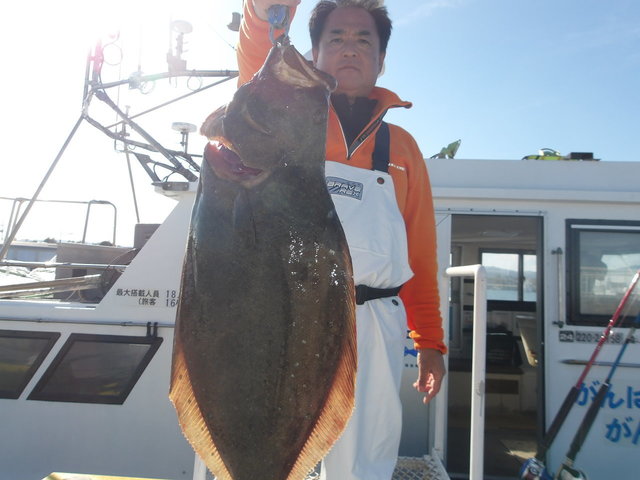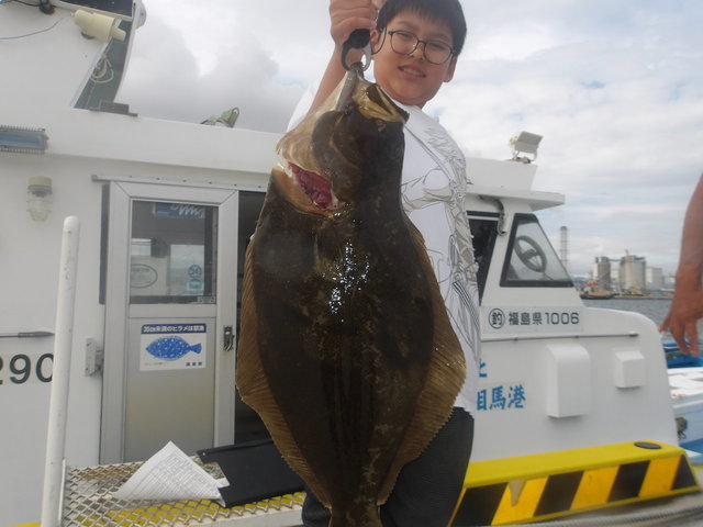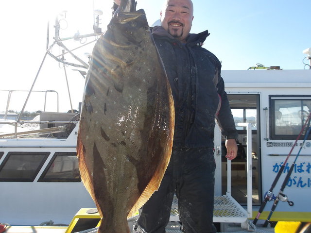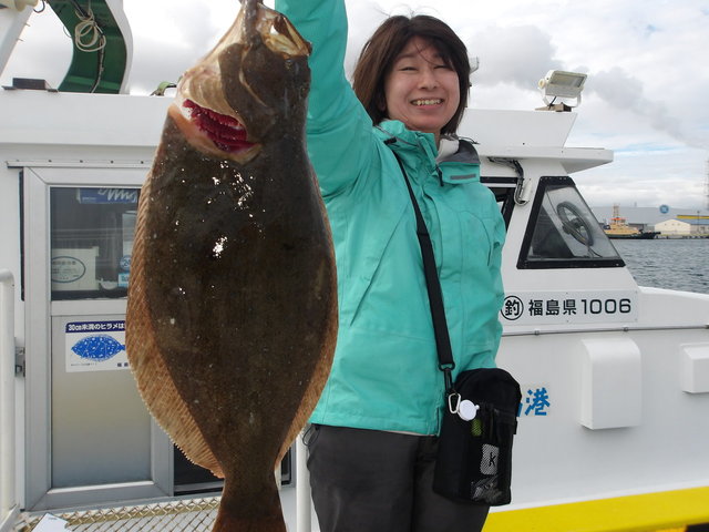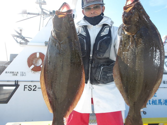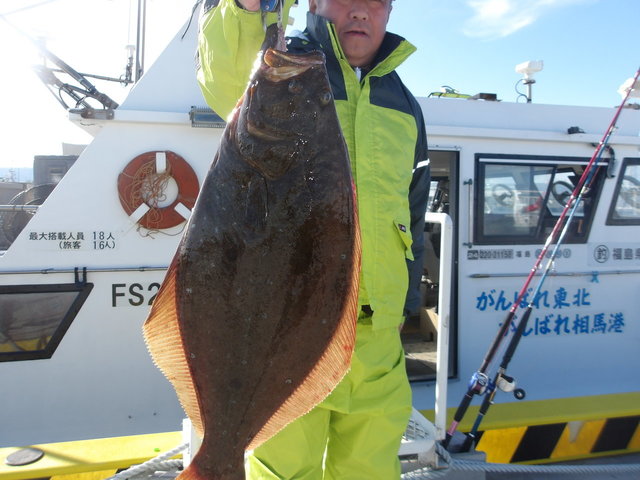 51~91cm 1~13匹 10月24日(金)『遠征』豊漁丸ヒラメ船釣果報告 【釣果】 ・ヒラメ51~91cm(船中102匹)※リリース19匹 ・マゾイ ・クロソイ ・ウッカリカサゴ ・マトウダイ 【天気】晴 【水温】20.1℃ 【水色】澄 【コメント】 今日の豊漁丸は朝一良い所に当たらず苦戦・・・ ですが、中盤食いはじめコンスタントに良型~特大ヒラメ上がりました! 3日連続乗船のお客さん、これまた最終日も80cmオーバーでお見事です。 特大ヒラメ写真撮れなかったのが数枚ありました。残念です。 皆様お疲れさまでした。また明日~(@^^)/~~~ 80cm台7匹 90cm台2匹 ※活きイワシ数に限りがございます。大切に使って下さい ※自然保護の為、50cm以下のヒラメは放流しています。 50cmに満たないヒラメは速やかにリリースしていただきます。 ・トリプルフック仕掛けは使用しないで下さい。