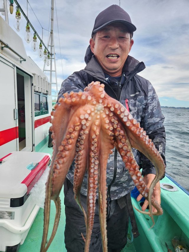 (マダコ)0.30~1.50kg 1~7匹 他に、が釣れました。 タコ船の釣果。 ご乗船の皆様お疲れさまでした。 ありがとうございます。