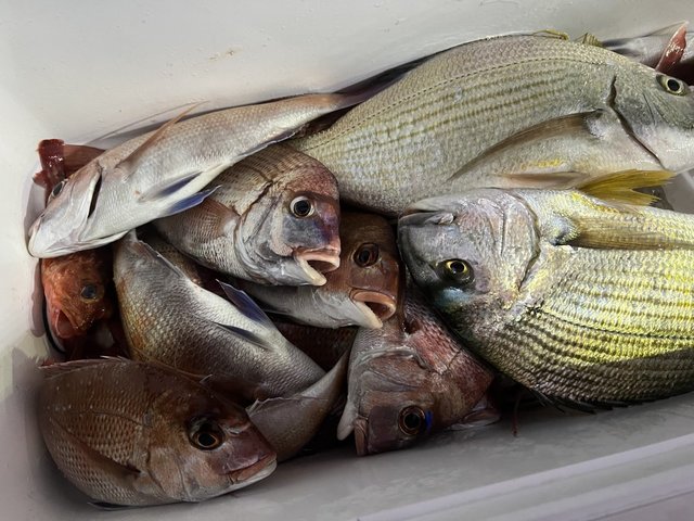 0.30~0.80kg 3~4匹 ポツポツ喰いましたが…大鯛•型物が喰ってくれず不発に終わりました。 お乗り頂いたお客様お疲れ様でした。