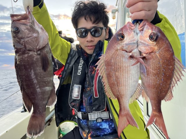 0.40~0.80kg 1~9匹 メイチダイ カサゴ ウマヅラハギ 午後マダイ船。マダイ、メイチダイ、カサゴ、ウマヅラハギなどが釣れました。