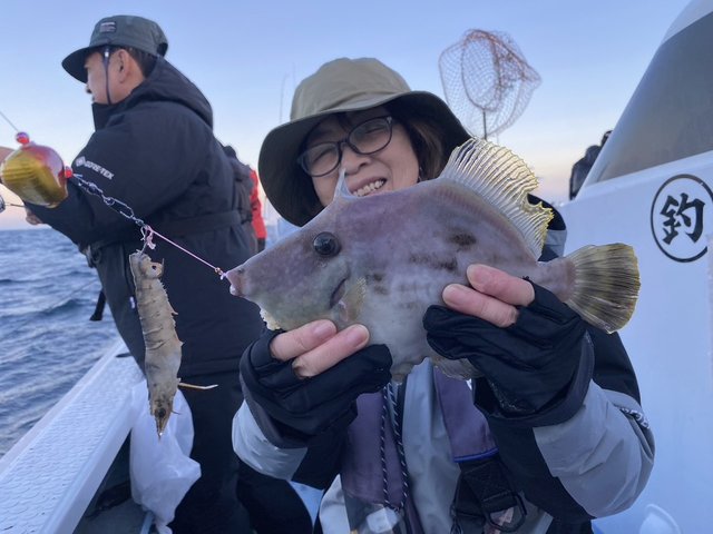 クロムツ ハナダイ カイワリ ウマヅラハギ イサキ 今日も(^^)v 最初から良型黒ムツポツポツ・・・・十分釣れて、今日も余裕で美味しいお魚さんへ、多点掛けで入れ食い爆釣(^^♪(^^♪後半も余裕でマダイ狙いから沖の五目まで、マダイ・ハナダイ・カイワリ・ウマヅラハギ等釣れました。最後の15分定置網のポイントでイサキも入れ食い!!クーラー入りきれず、発泡スチロール出動(`・ω・´)ゞ我が家のおかずまで頂きました。有難うございました<(__)>明日はまだ3名、日曜日もガラガラですので好調なうちに遊びに来てください。 黒ムツはオモリ(150号・200号)両方お持ちください。後半のコマセ五目はマダイ中心に狙おうと思いますのでよろしくお願いいたします。